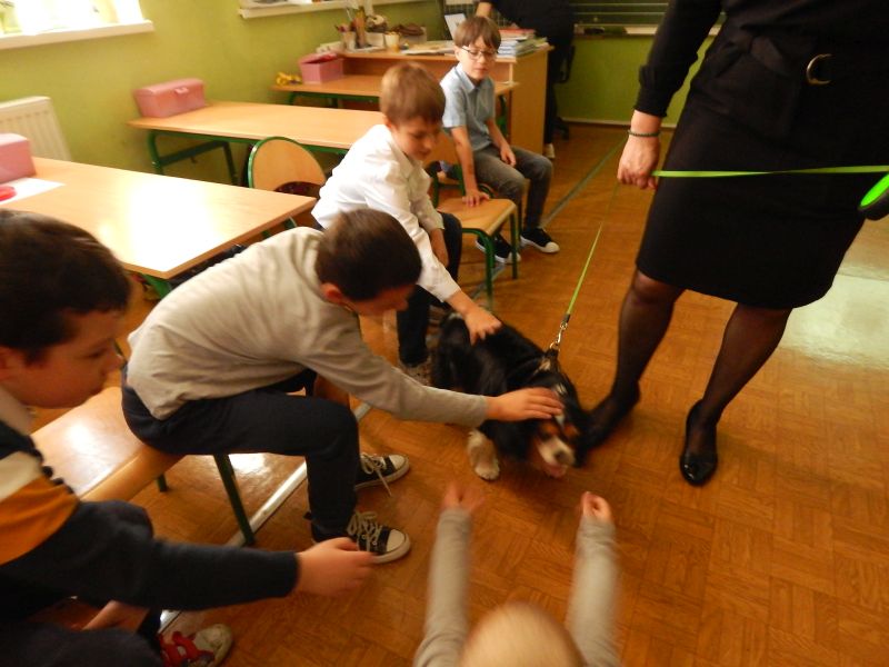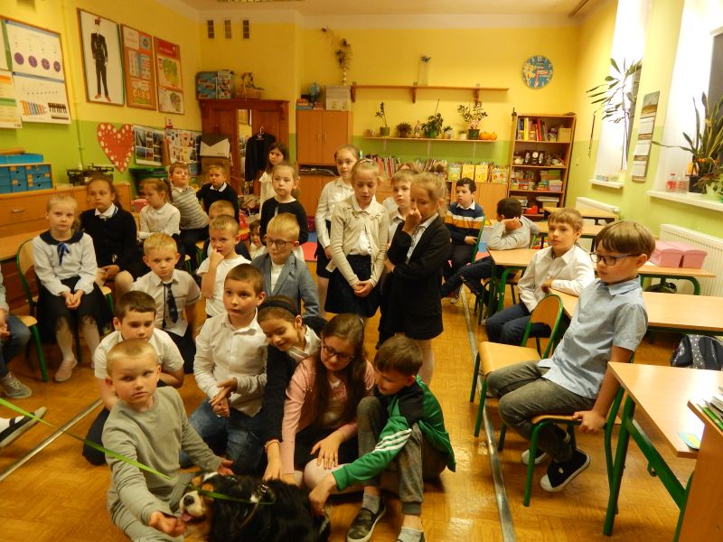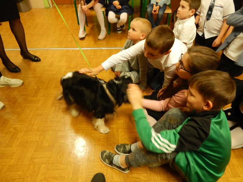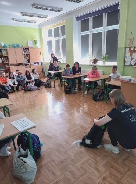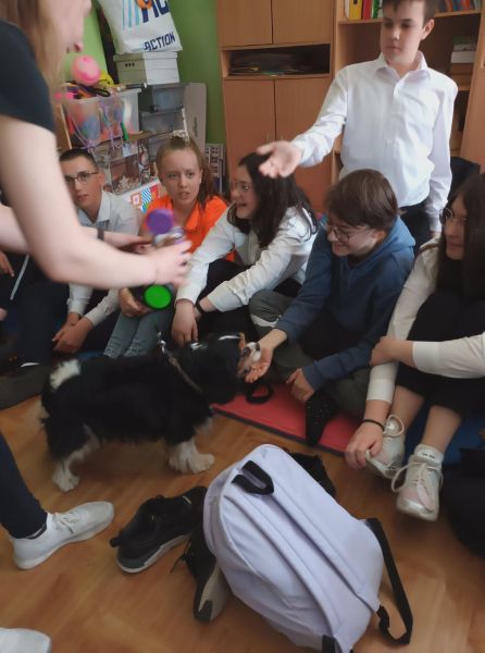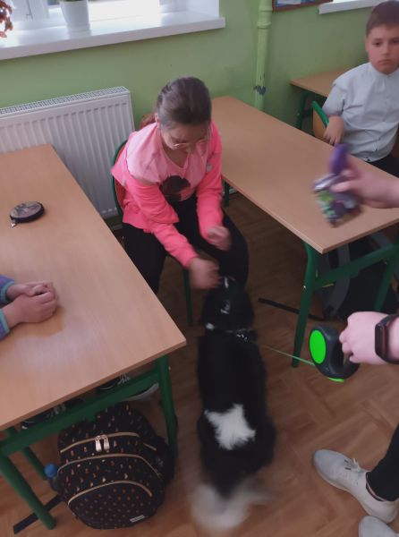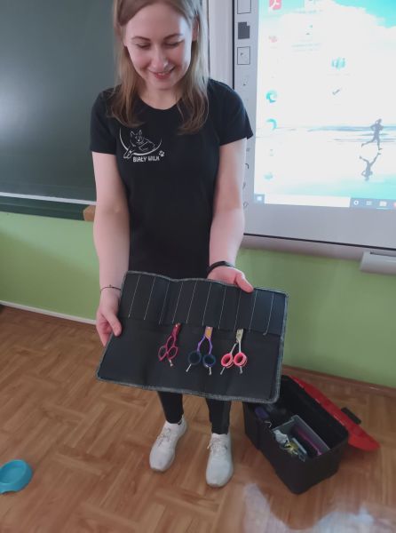 We wtorek, 10.05.2022 r. odwiedziła nas absolwentka naszej szkoły - pani Joanna Krzepisz, która z zawodu jest groomerem. Przyjechała z bardzo przyjaznym pieskiem spanielem - Marleyem, by opowiedzieć o swojej pracy. Zaprezentowała uczniom kl. I, II, III i VII b niektóre narzędzia oraz filmiki i fotografie swojego całego warsztatu pracy, wyjaśniła jak należy postępować ze zwierzętami - jak o nie prawidłowo dbać. Poruszyła również temat bezpieczeństwa, czyli jak Nie witać się z psem i jak to robić prawidłowo, czyli Bezpiecznie! Wyjaśniła - jak WAŻNA jest PIELĘGNACJA - co możemy i co powinniśmy zrobić w domu. Pojawiło się dużo pytań, na które odpowiadała rozwiewając wszelkie wątpliwości uczniów i nauczycieli.