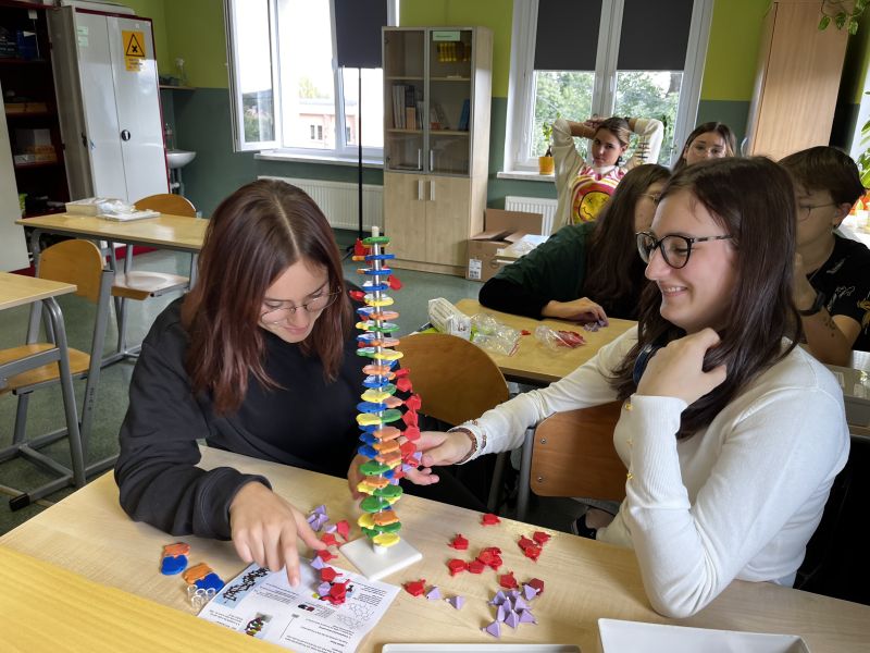Dzisiaj na lekcji biologii uczniowie z klasy 8b przenieśli się we wczesne lata dzieciństwa i przypomnieli sobie, jak dużo radości sprawia zabawa klockami 😁. Tymi klockami były dzisiaj elementy cząsteczki DNA. Nauka i zabawa jak widać mogą iść w parze 😁