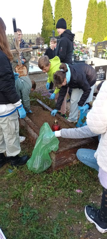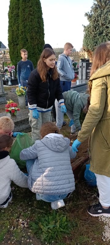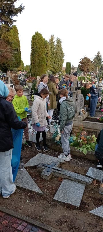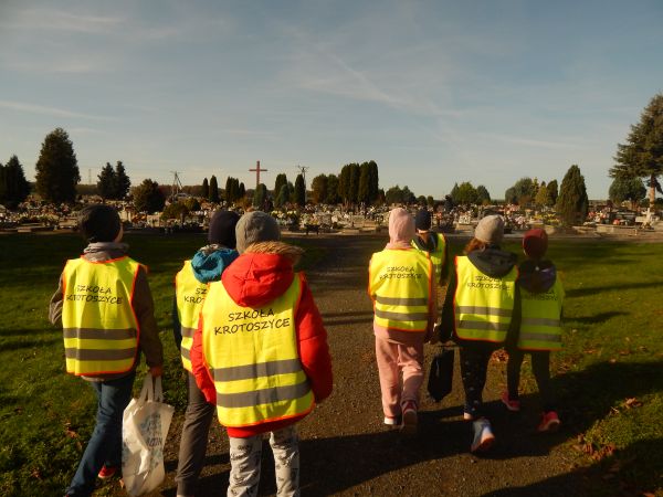Odwiedzili oni cmentarz w Krotoszycach, by zadbać o zapomniane groby, zapalić symboliczny znicz. Akcję zbierania zniczy zorganizowało koło szkolnego wolontariatu.