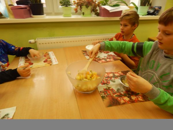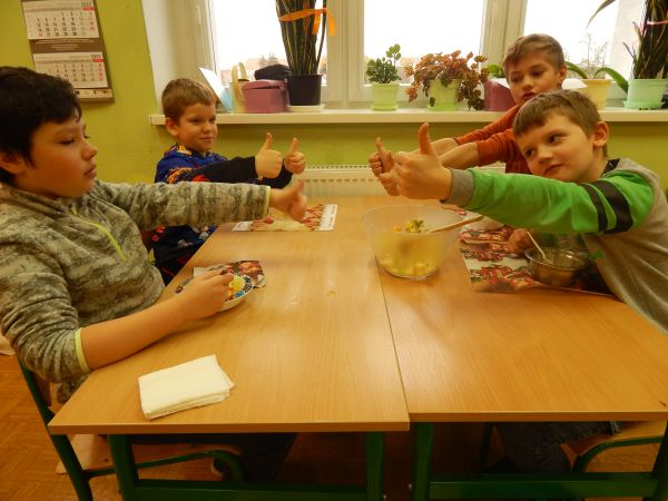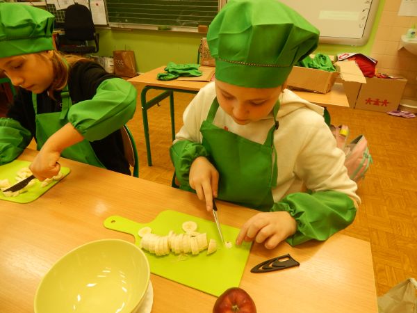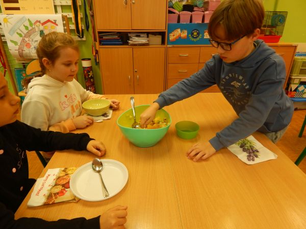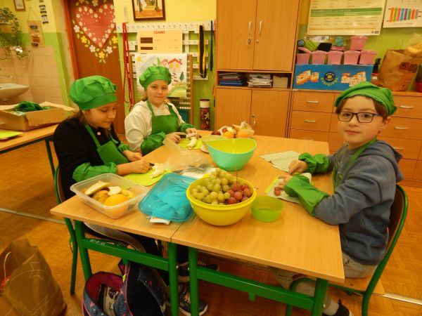 Uczniowie klasy 3 realizują program profilaktyczny "Żyjmy zdrowo i bezpiecznie", w ramach którego uczą się różnych sposobów zdrowego odżywiania.
