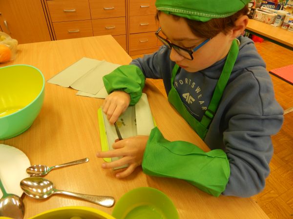 Korzystając z akcesoriów zakupionych w ramach projektu "Laboratoria Przyszłości" dzisiaj przygotowali pyszną i zdrową sałatkę owocową. Mniam, mniam...
