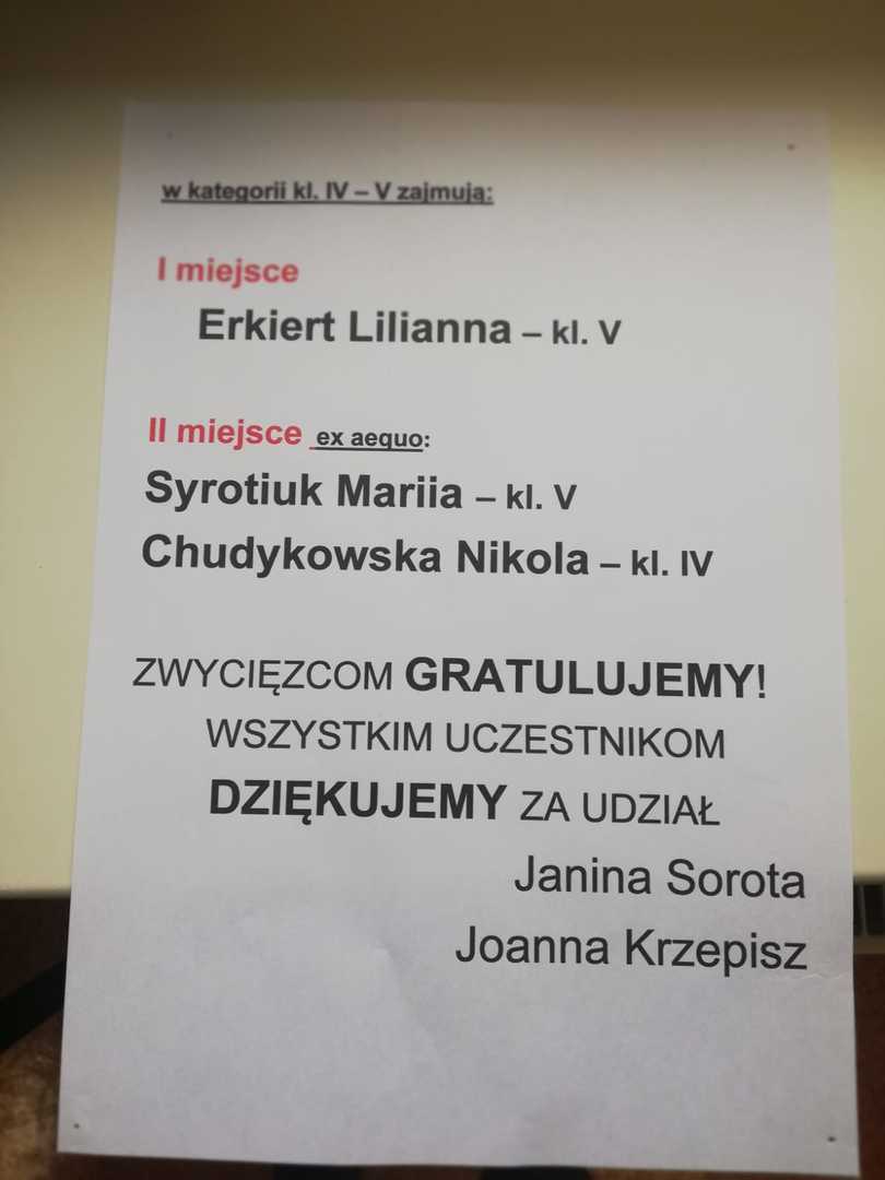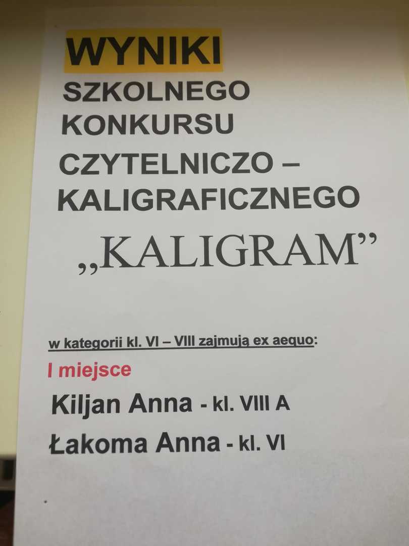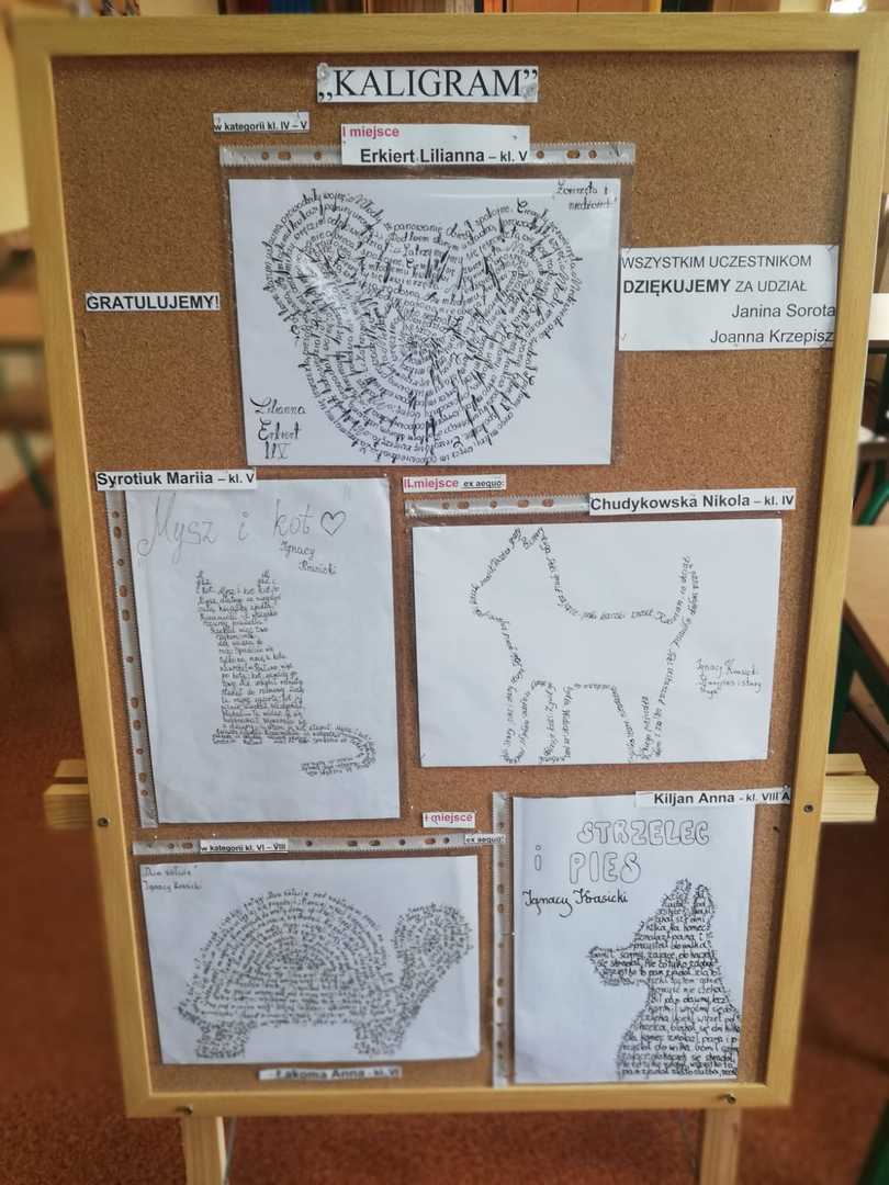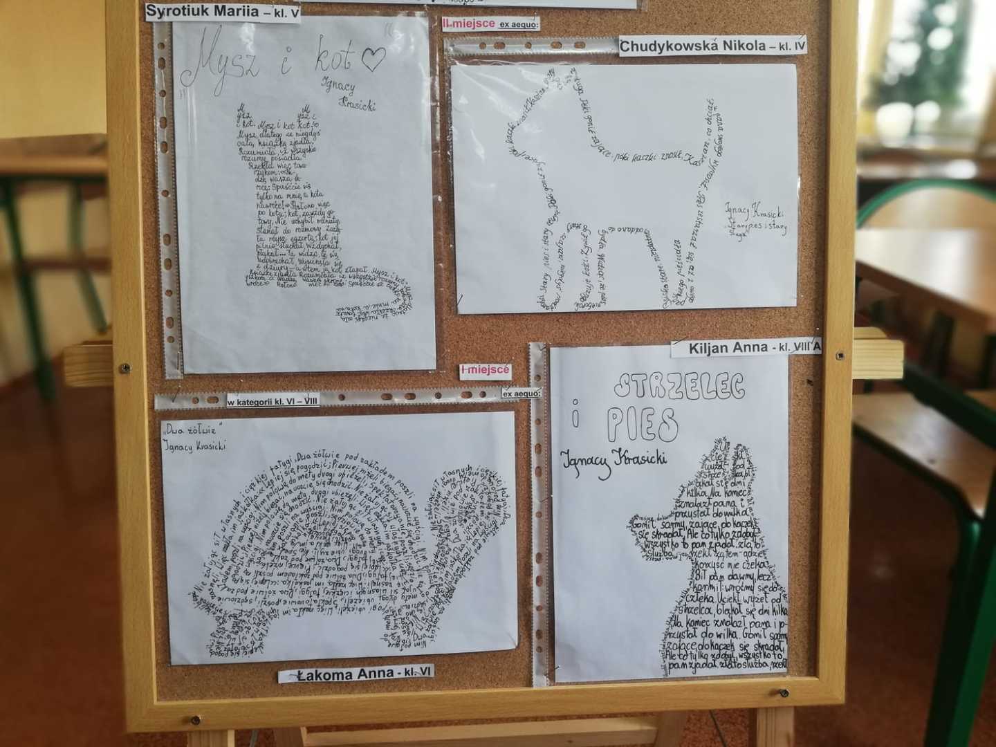 Podajemy wyniki Szkolnego Konkursu czytelniczo-kaligraficznego "Kaligram", opartego na bajkach Ignacego Krasickiego