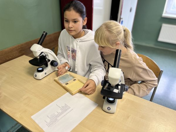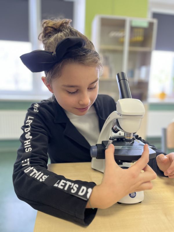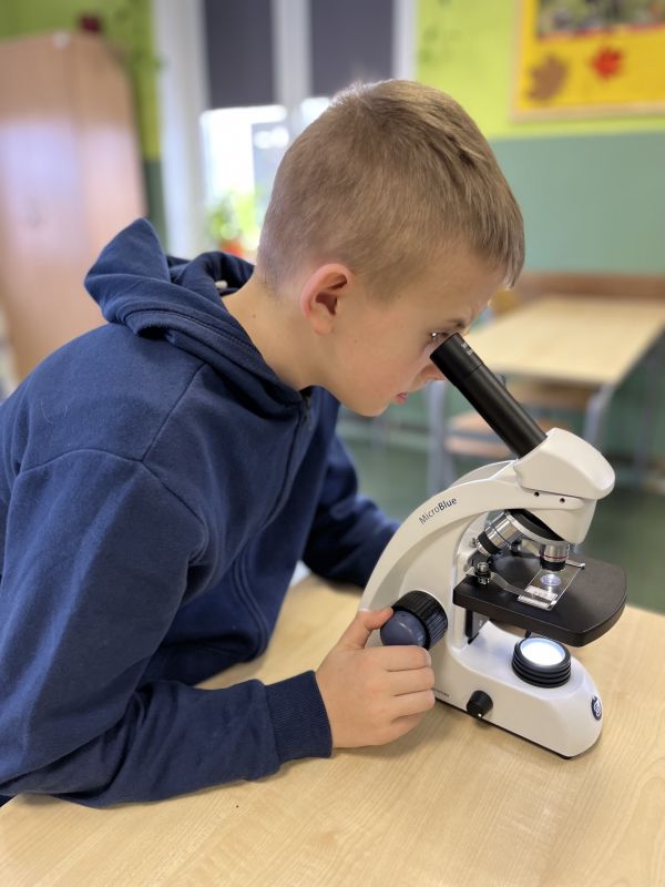 Lekcja przyrody z mikroskopem w klasie 4 i 5.