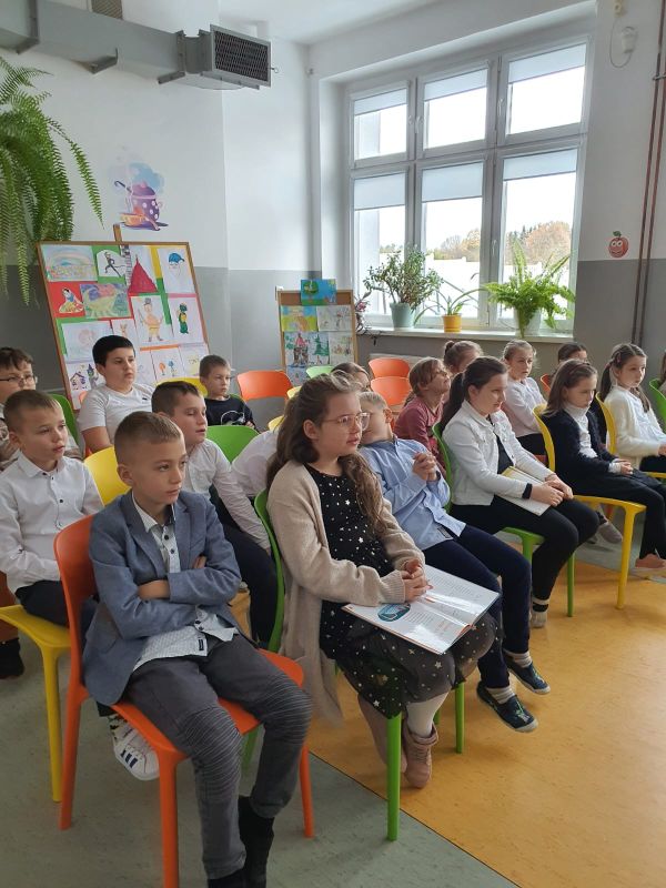 Przygotowany program prowadziłam wspólnie z Lilianną Erkiert z kl. V, a wsparły nas recytatorki: Hania Kiljan i Zuzia Matysiak z kl. I, Lila Łukaszewicz i Julia Rusinek z kl. II oraz Mariia Syrotiuk z kl. V.