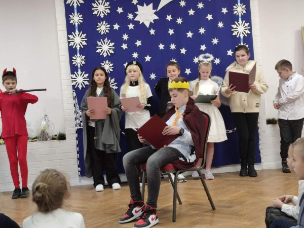 22.12.2022 r. - jak nakazuje tradycja naszej szkoły, odbyło się przedstawienie jasełkowe. W tym roku zostało przygotowane przez uczniów kl. 3 i kl. 5 pod opieką wychowawców: pani Elżbiety Rakuzy i pana Jana Zagawy.