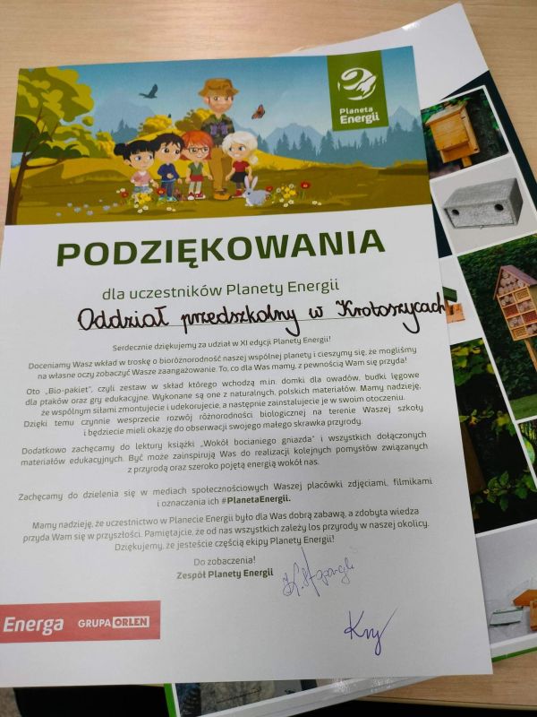 Oddział przedszkolny z naszej szkoły wziął udział w projekcie edukacyjnym organizowanym przez ENERGĘ z grupy ORLEN.