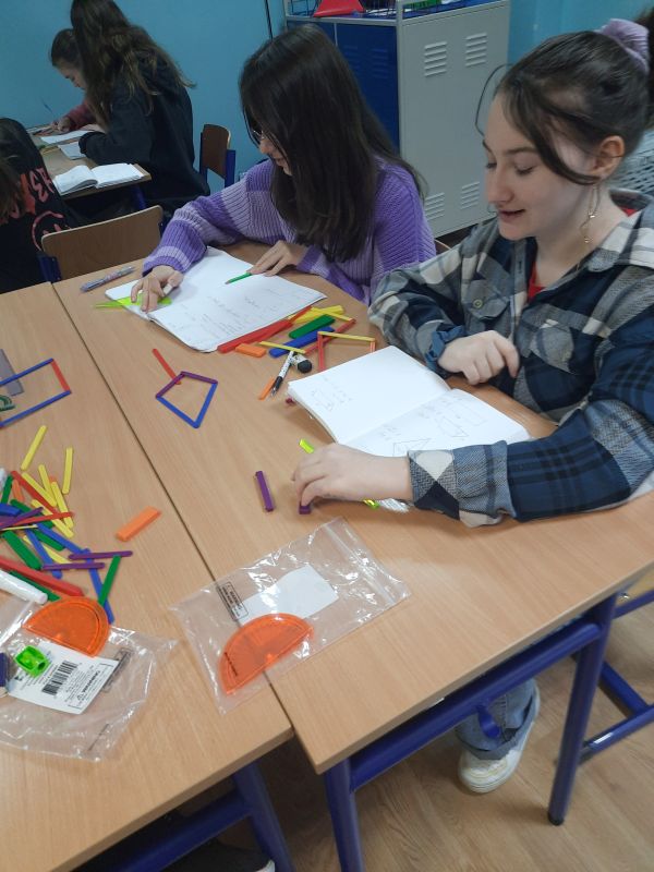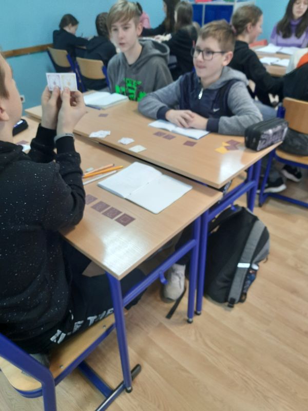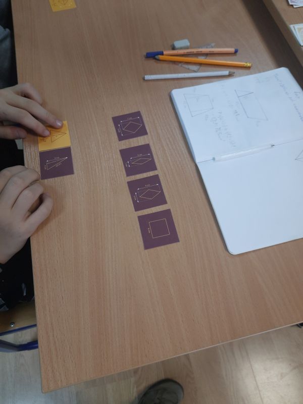 Mam nadzieję, że praca z kolorowymi patyczkami trochę rozjaśniła to zagadnienie. Uczniowie budowali czworokąty o podanych nazwach, a następnie mierzyli potrzebne wielkości i obliczali pola. Każda grupa pracowała z zaangażowaniem. Na koniec lekcji uczniowie sprawdzili swoją wiedzę i sprawność obliczeniową w grze karcianej pt. "oblicz pole".