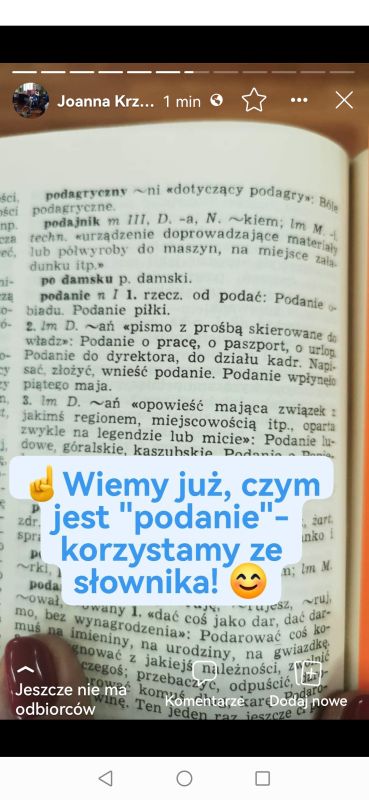 - odkryliśmy znaczenie pojęcia - "podanie",