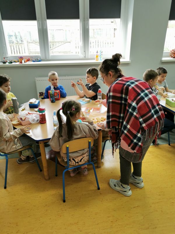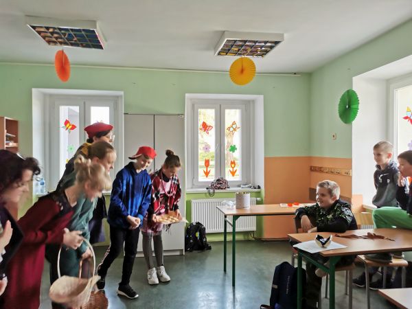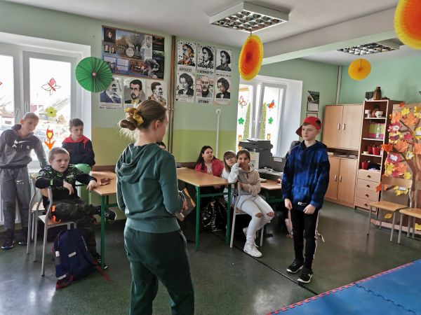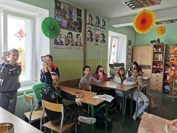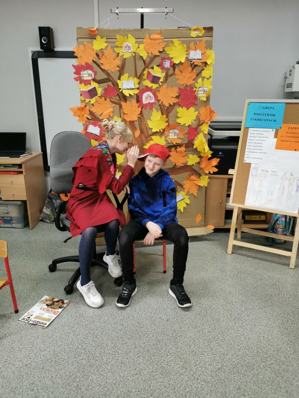 W środę 22.03.2023 r. grupa uczniów z kl. 5 "plus dziewczynka z kl. 1 - POZYTYWNIE ZAKRĘCENI - zaprosiła na premierę inscenizacji, pt. "Czarodziejskie Słowo". Aktorzy zostali serdecznie przyjęci: w oddziale przedszkolnym i w klasach 1 - 5. Wśród widzów była również pani Dyrektor, wychowawcy i panie z obsługi.
