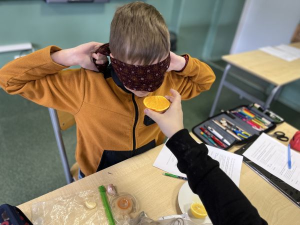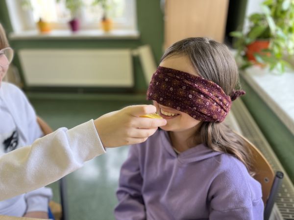 Zmysły człowieka to podstawowy sposób komunikowania się z otaczającym nas światem. Na lekcji przyrody, uczniowie w parach wykonywali zadania, które pomogły im zrozumieć jak działają i funkcjonują nasze zmysły. Wyostrzali smak i węch, uwrażliwiali dotyk.