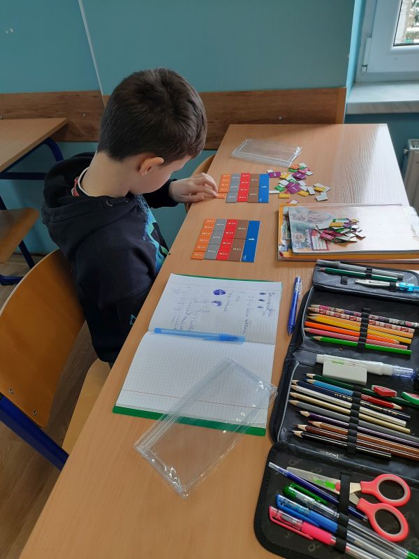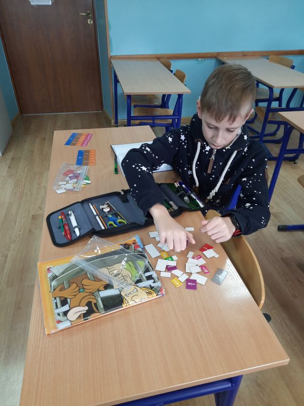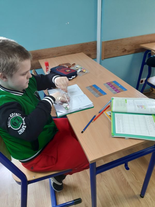Na lekcjach matematyki uczniowie klasy 4 wkroczyli w świat ułamków zwykłych. Jest to zupełnie nowy materiał dla naszych uczniów, dlatego też staramy się przedstawić ułamki w różny sposób. Uczniowie bardzo chętnie wykorzystują paski ułamkowe, które pozwalają im zrozumieć wiele nowych pojęć a także oswoić się z nowym zagadnieniem.
