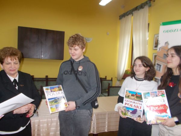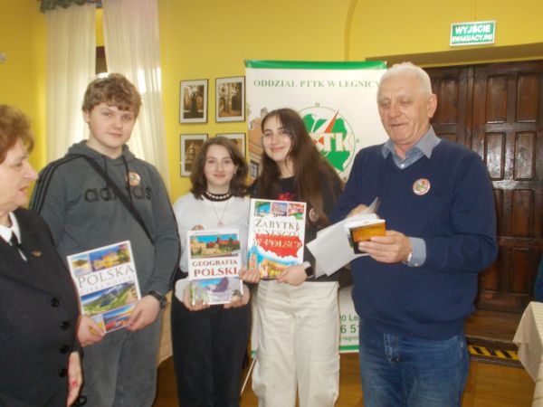 Konkurs otworzyła pani prezes Oddziału PTTK Pani Bogusława Grabek, a na zakończenie pani wicestarosta Powiatu Legnickiego Pani Jania Mazur wręczyła laureatom nagrody: dyplomy, książki, przewodniki turystyczne oraz mapy naszego powiatu, z których bardzo się cieszymy.