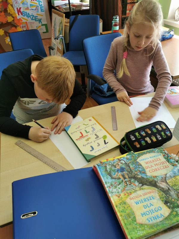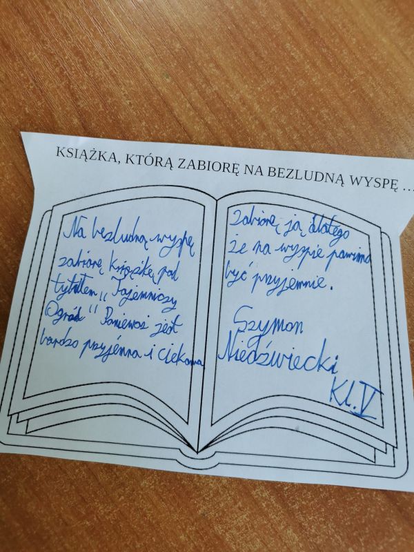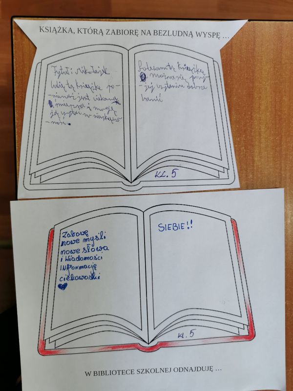 📖 Była okazja do wypowiedzi na temat książek, czytania, biblioteki i bibliotekarza: Czym może być książka? Biblioteka jest dla mnie miejscem, które... W bibliotece szkolnej odnajduję... Lubię/Nie lubię czytać, ponieważ... Książka, którą zabiorę na bezludną wyspę ... Książki są dla mnie ... Pani z naszej biblioteki jest dla mnie...