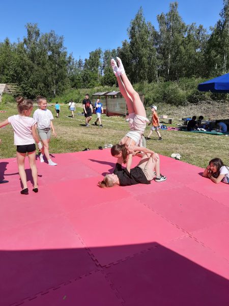 - na rozłożonych matach każdy mógł spróbować swoich sił w wykonywaniu figur akrobatycznych