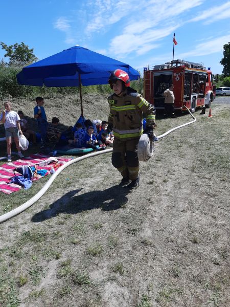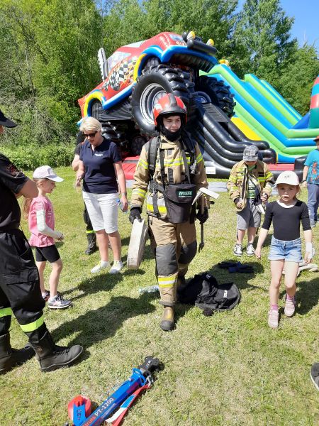 - wszyscy chętnie zaglądali do wozu strażackiego, mierzyli strój strażaka, próbowali swoich sił "w walce z żywiołem" - dziękujemy OSP z Krotoszyc za udział i "fontannę wody" w ten ciepły dzień