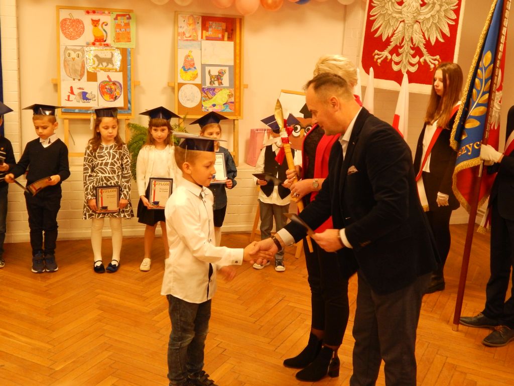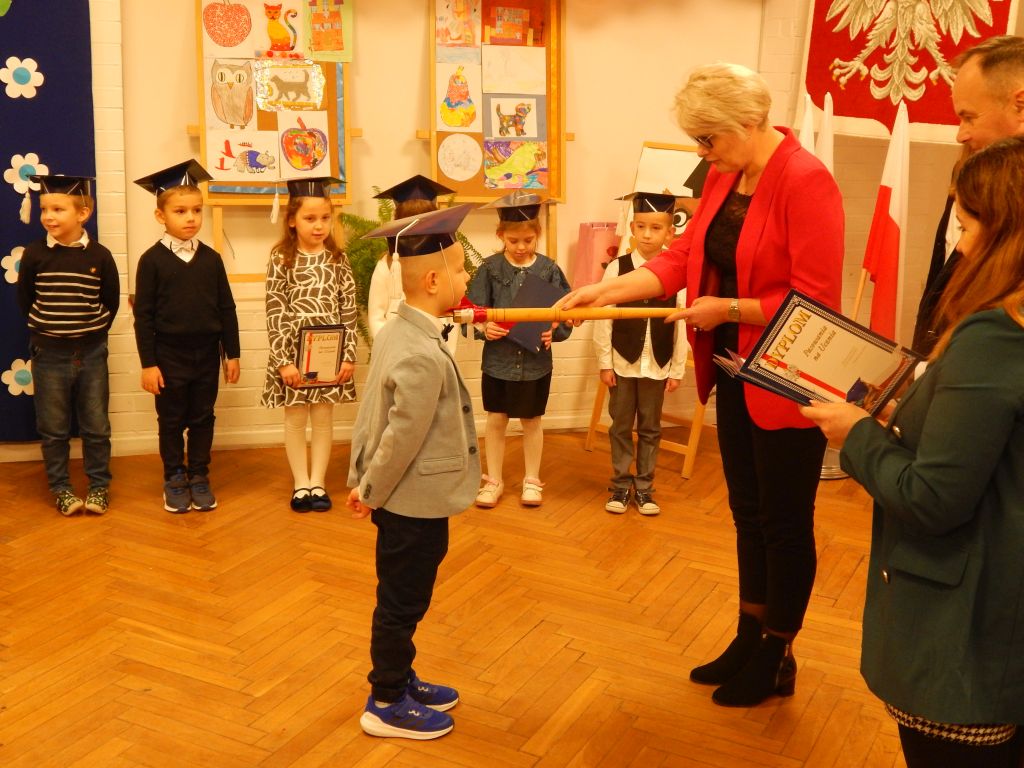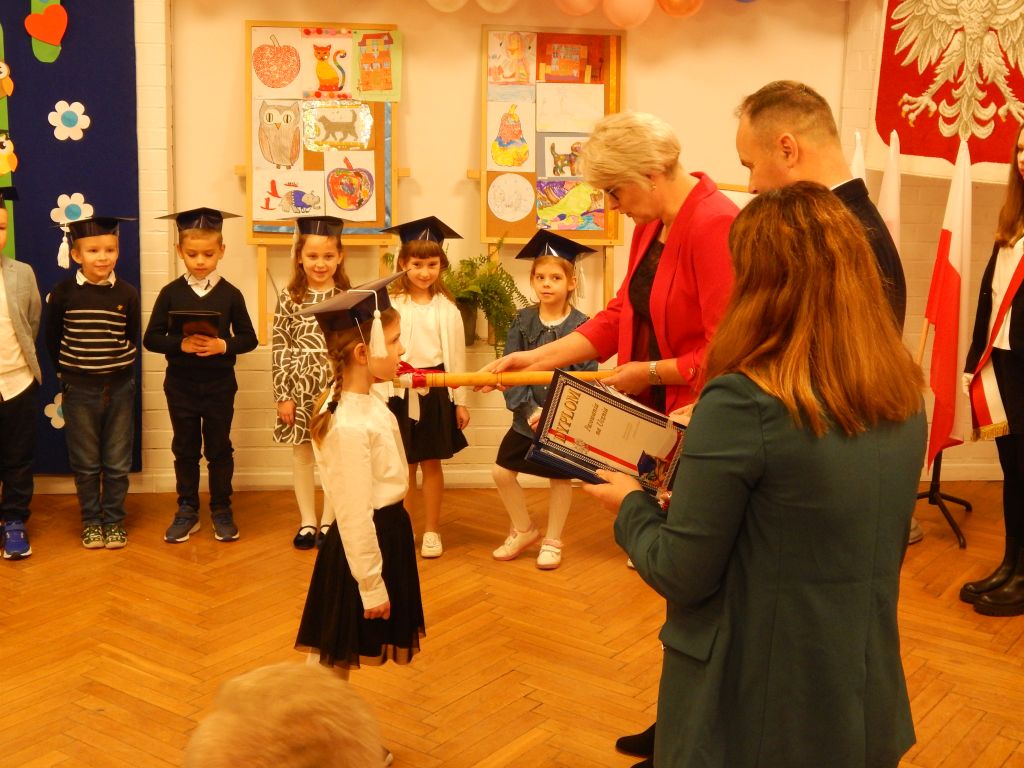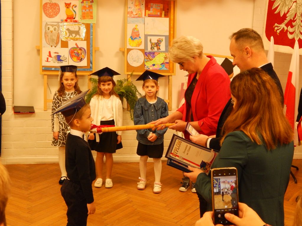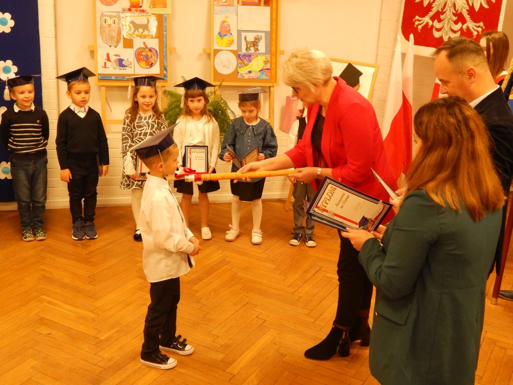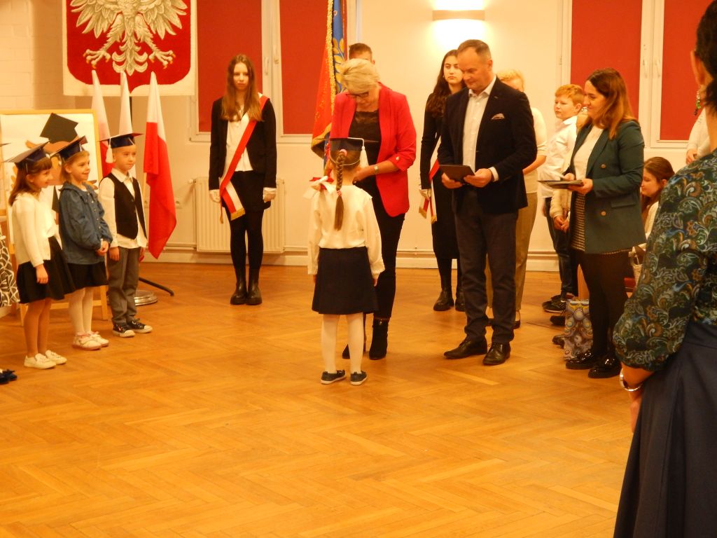 Następnie pani dyrektor dokonała aktu pasowania na ucznia.