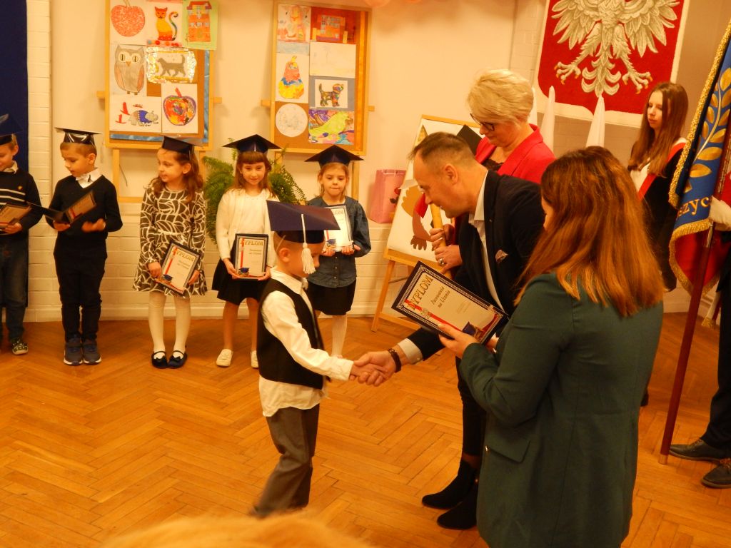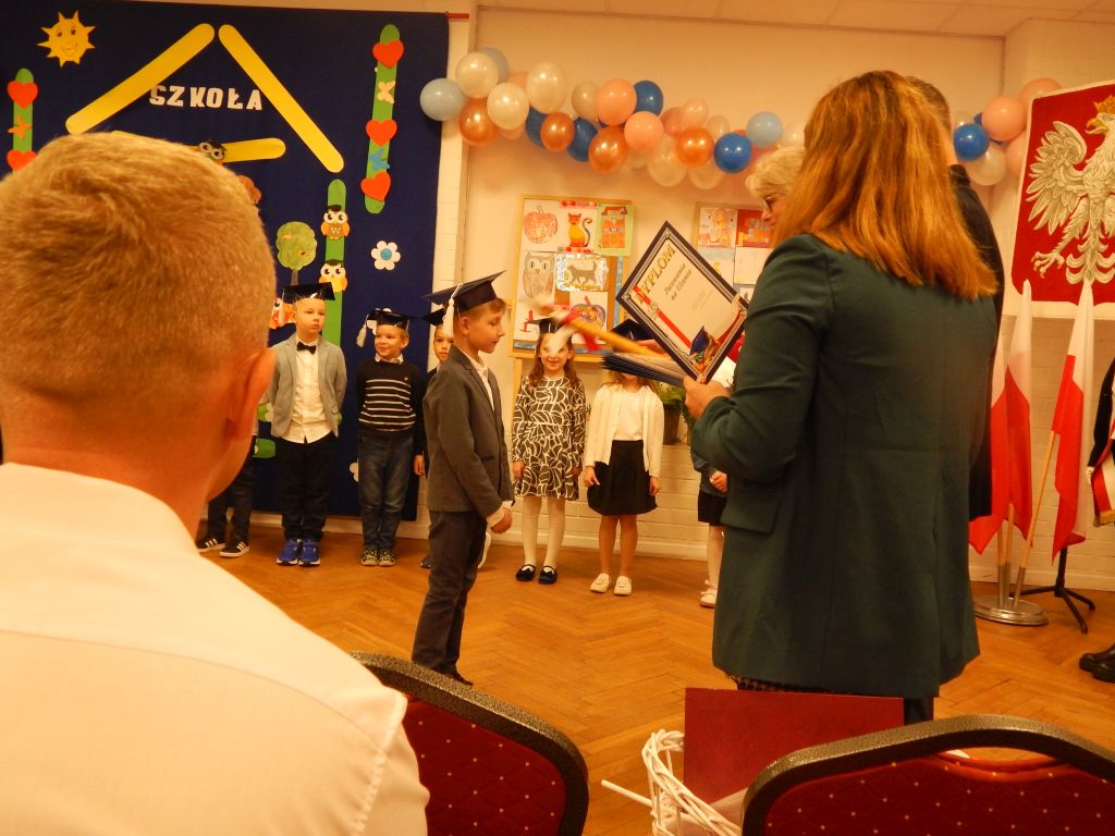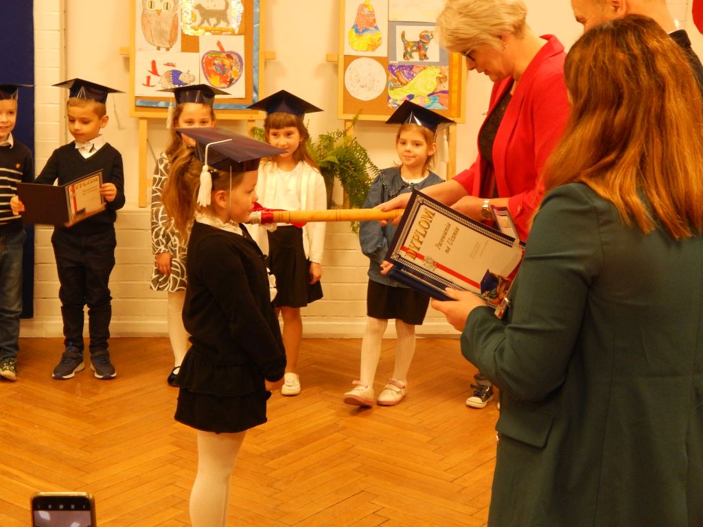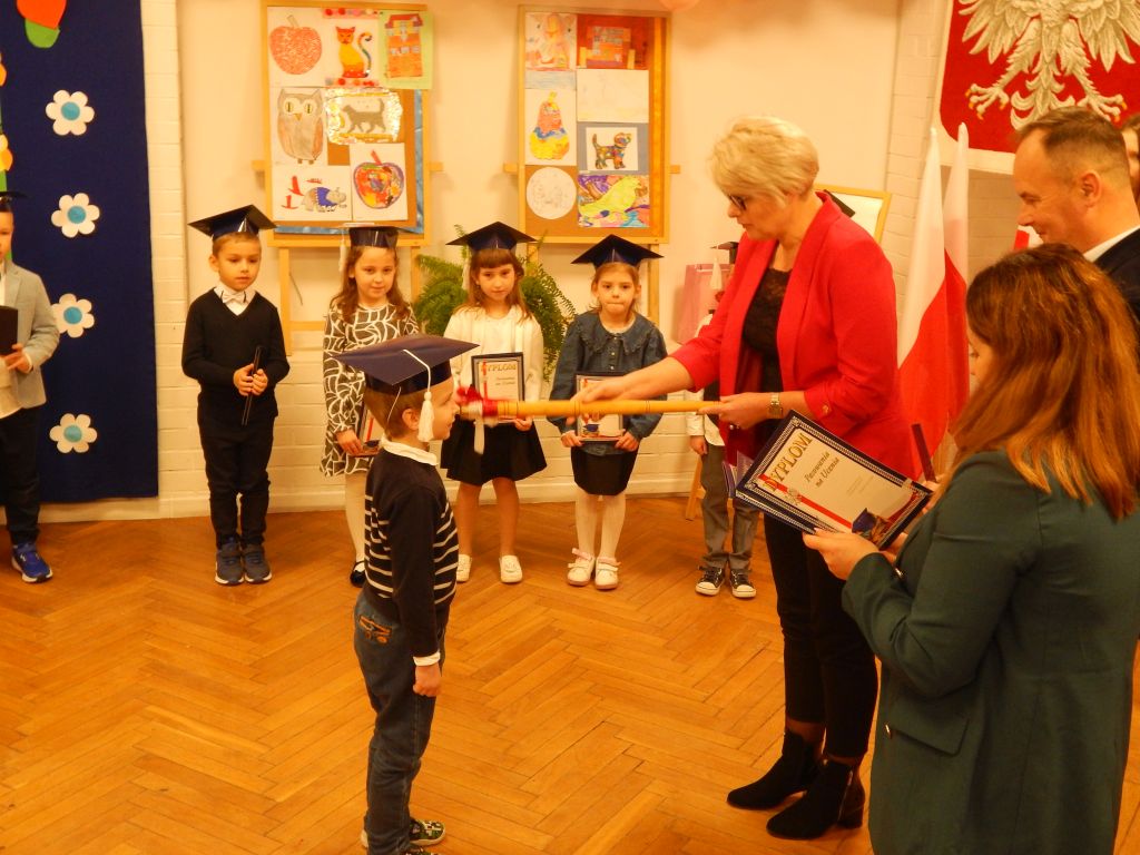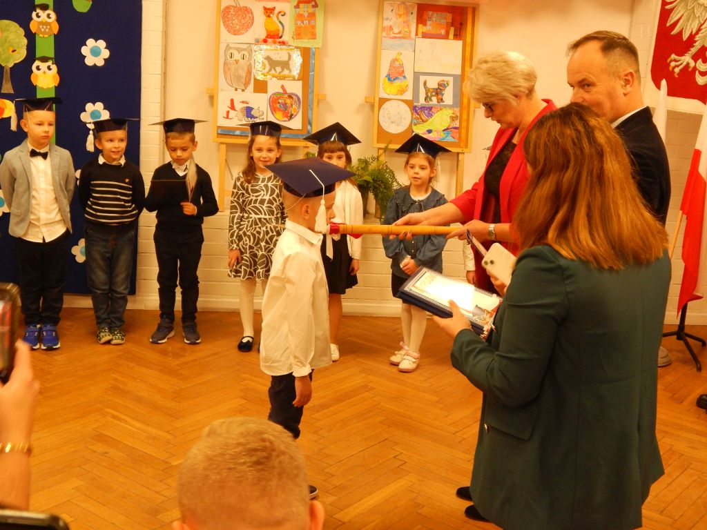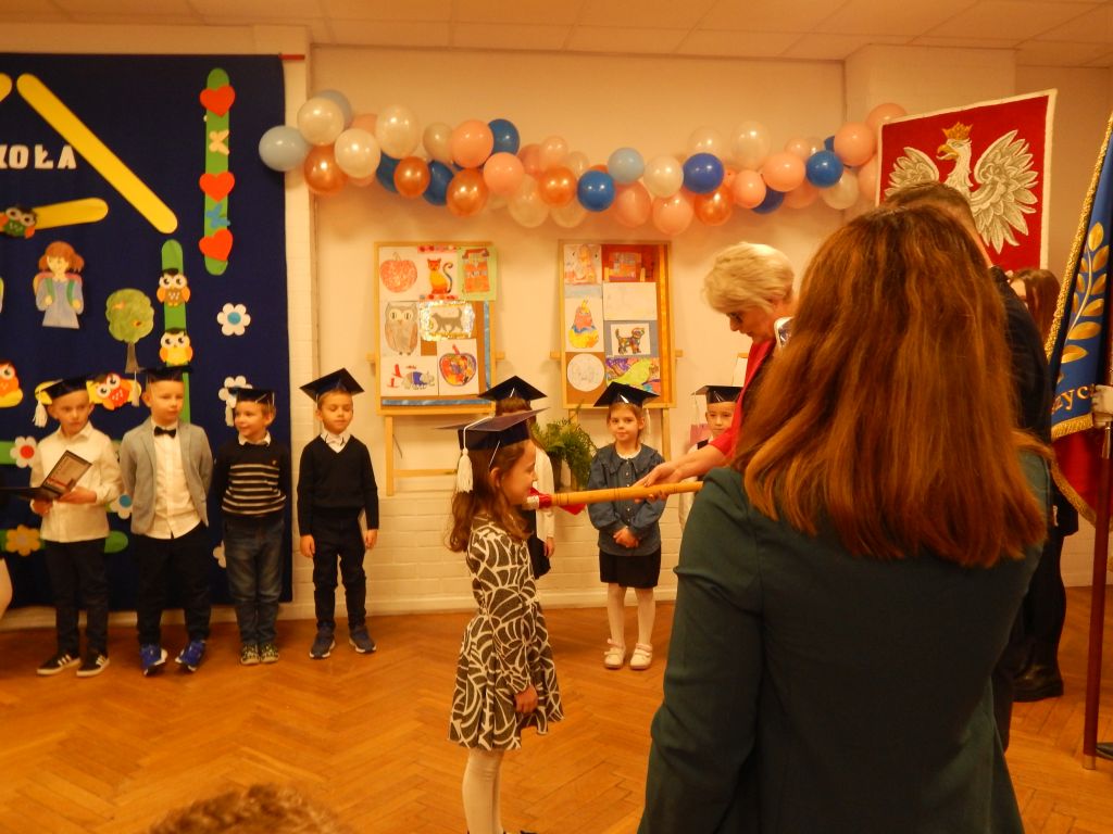 Następnie pani dyrektor dokonała aktu pasowania na ucznia.