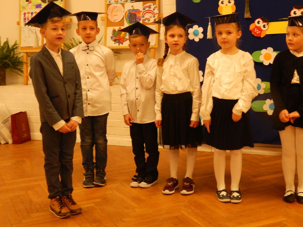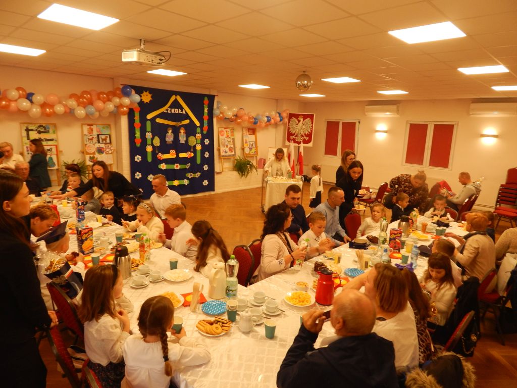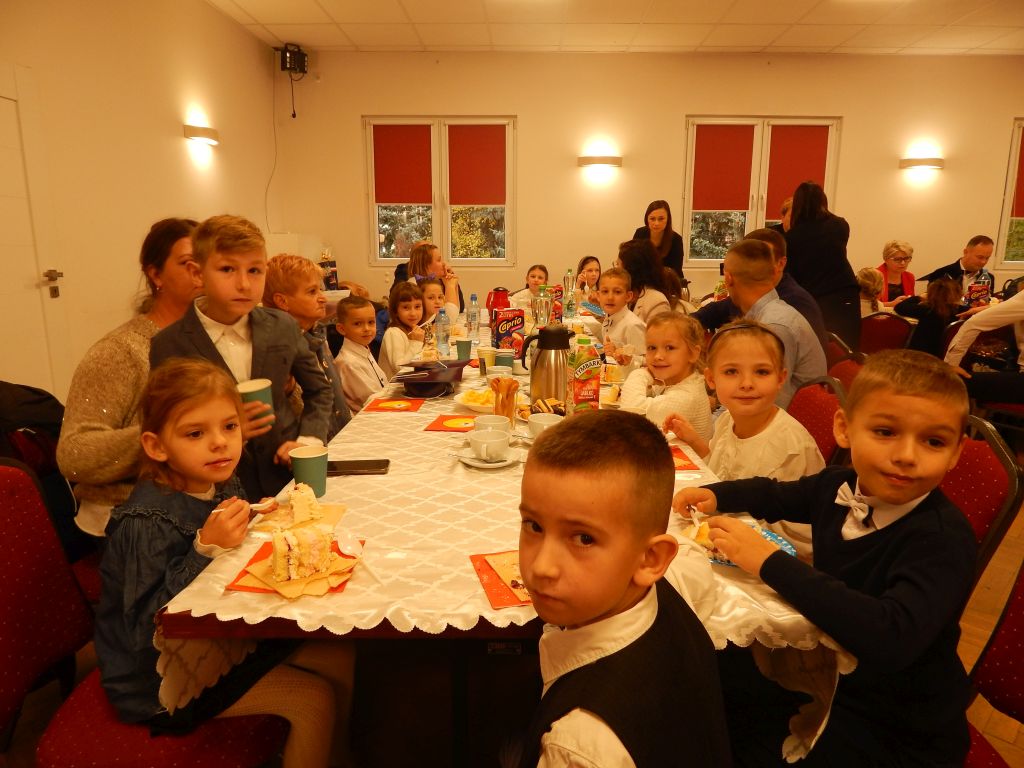 Kolejną częścią przygotowanej uroczystości był występ uczniów kl.1. Wspólne spotkanie zakończyło się słodkim poczęstunkiem przygotowanym przez rodziców i wspólną zabawą przy muzyce.
