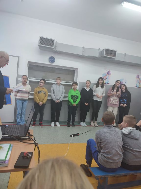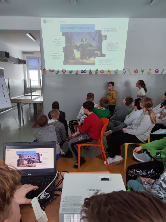 Konkurs był poprzedzony recytacją wiersza Władysława Broniewskiego pt.: „ Kopernik” w wykonaniu uczennicy klasy VI – Marii Syrotiuk. Zaangażowani uczniowie na ten dzień przygotowali plakaty o tematyce związanej z postacią tego wybitnego przedstawiciela nauki polskiej, a na podsumowanie zebrani obejrzeli prezentację o życiu i dokonaniach Mikołaja Kopernika.