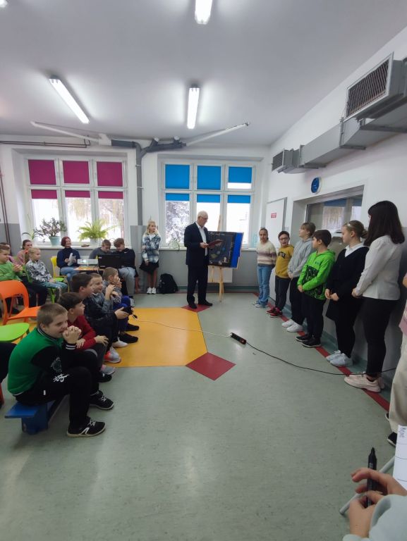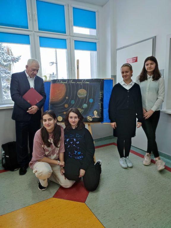 Dnia 28 listopada 2023 r. w naszej szkole odbył się konkurs wiedzy o Mikołaju Koperniku dla uczniów klas IV - VII. Każdą klasę reprezentowała dwuosobowa drużyna. Konkurs składał się z dwóch etapów: eliminacji i finału, w których uczestnicy odpowiadali na wylosowane pytania. Największą ilość punktów uzyskały równorzędnie drużyna z klasy VI w składzie: Paulina Kosoń i Maja Wolska oraz drużyna z klasy VII w składzie: Zuzanna Biskup i Marcelina Cieśla.