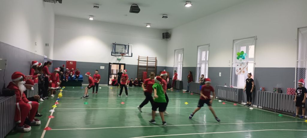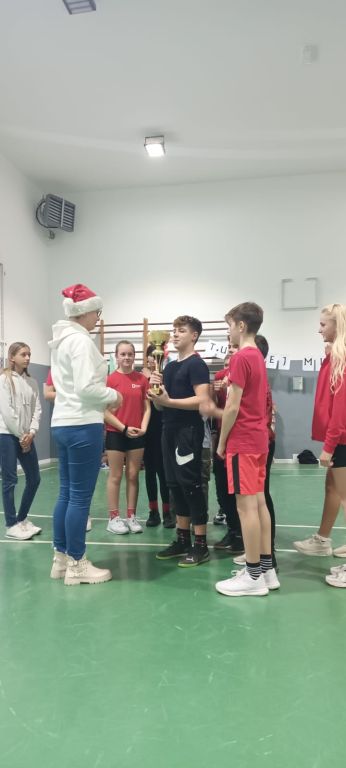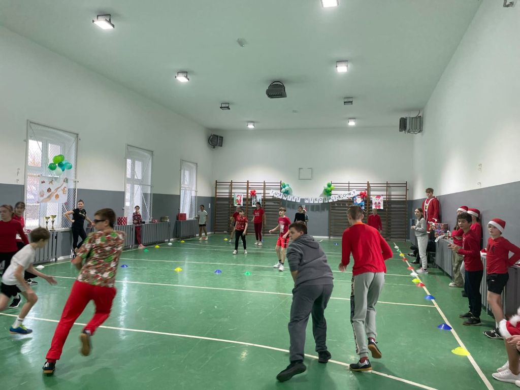W dniu dzisiejszym odbył się Mikołajkowy Turniej Sportowy. W rywalizacji międzyklasowej zwyciężyli uczniowie klasy 5 oraz 6. Na salę gimnastyczną przybył św. Mikołaj, który obdarował grzeczne dzieci słodkościami. Mikołajkowe stroje dzieci sprawiły, że ten dzień był pełen radości i usmiechu😁. Gratulacje dla wszystkich uczniów.
