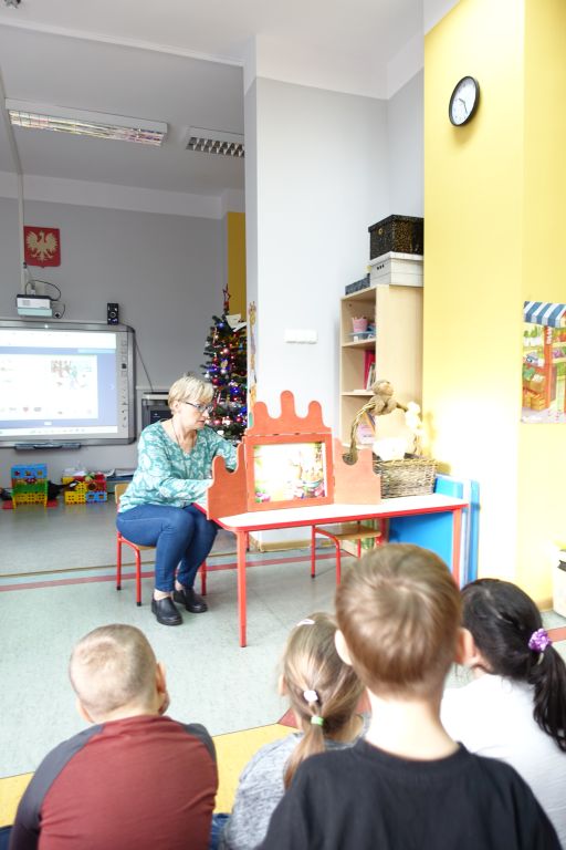 ️Wybrany tekst bajki - "O zajączku, który nie chciał się dzielić" czytałam wspólnie z dziećmi z oddziału przedszkolnego, techniką teatrzyku kamishibai.