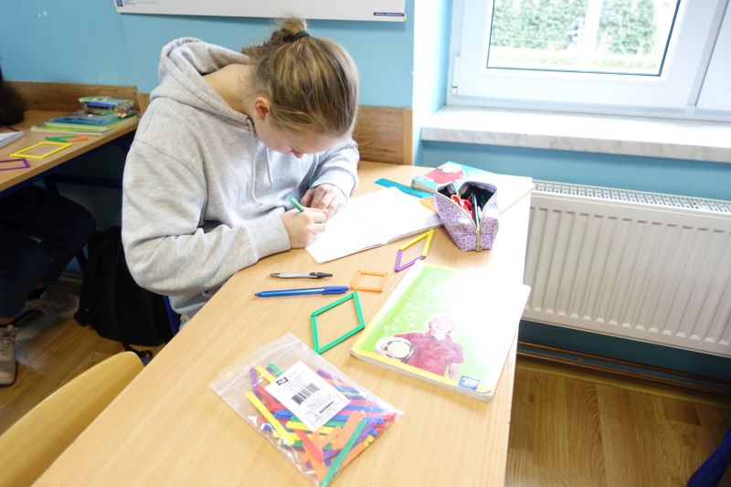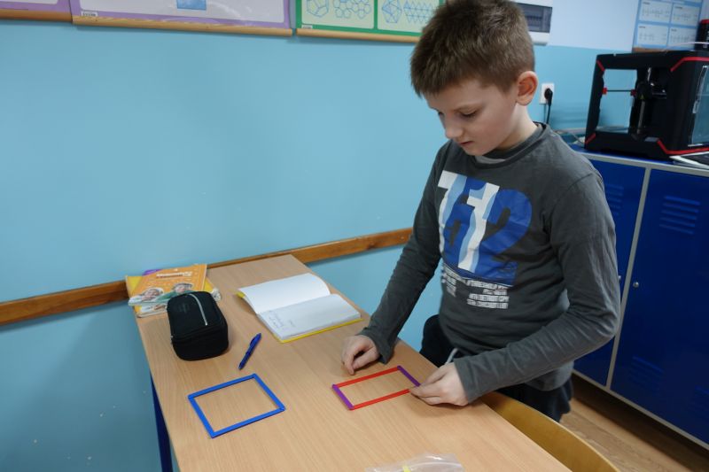 W ramach projektu "Laboratoria przyszłości" w szkole pojawiło się pudełko z kolorowymi patyczkami. Szybko okazało się, że kolorowe patyczki różnej długości trafiły do serc naszych uczniów. Pomagają one oswoić geometrię i to na różnych poziomach kształcenia. W lutym patyczki dają wsparcie uczniom klas 4 i 6. Uczniowie budują nazwane przez nauczyciela figury, szukają cech wspólnych i różnic w zbudowanych figurach, sprawdzają swoje przypuszczenia odnośnie kątów, itd. Okazuje się, że to proste narzędzie potrafi otworzyć drzwi do świata GEOMETRII.