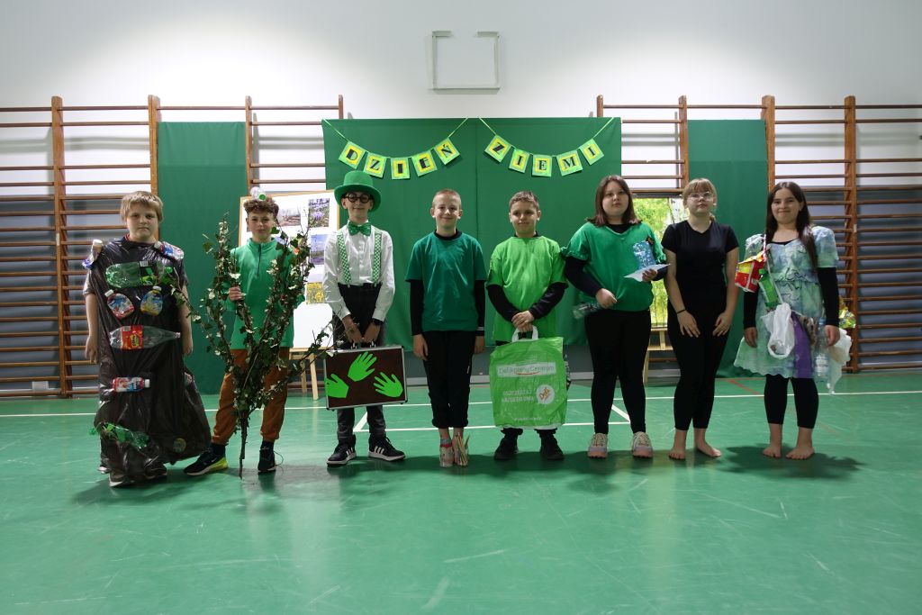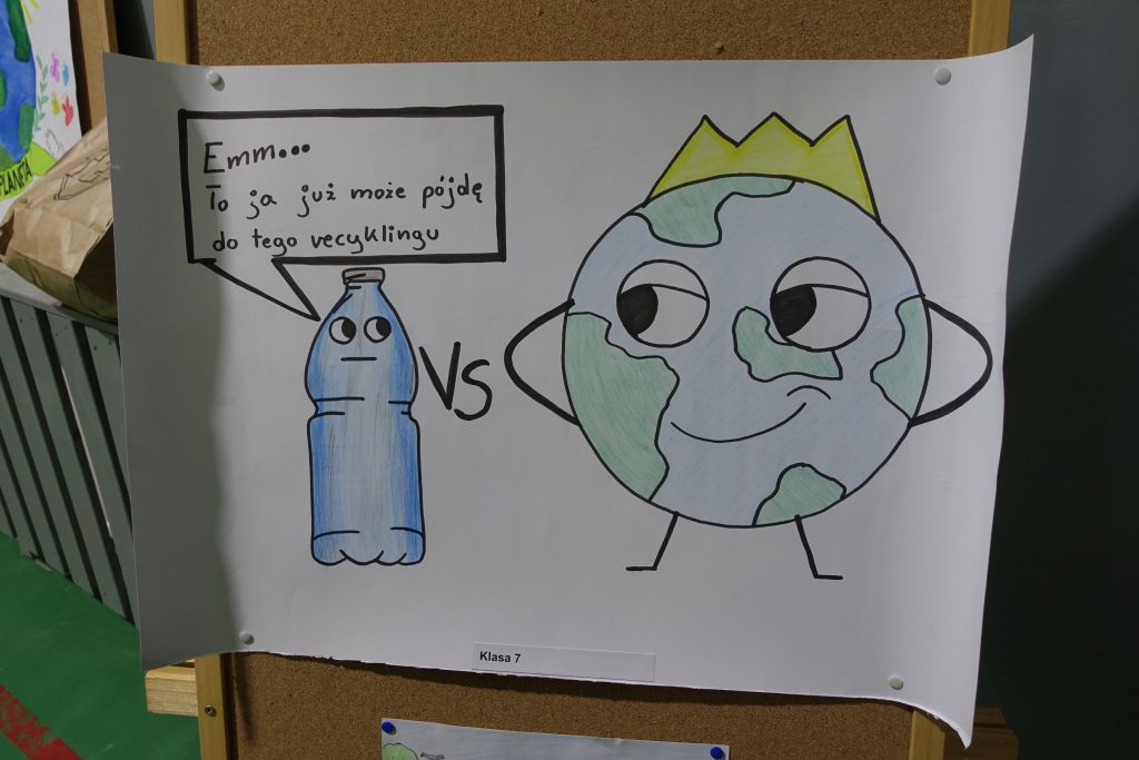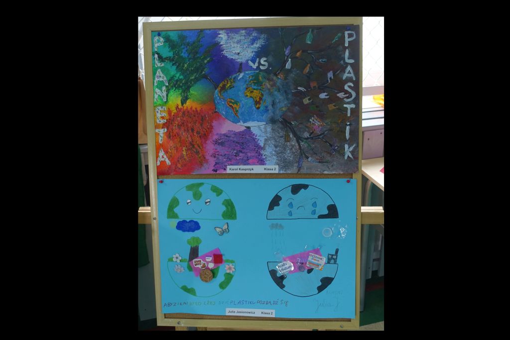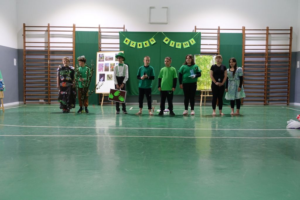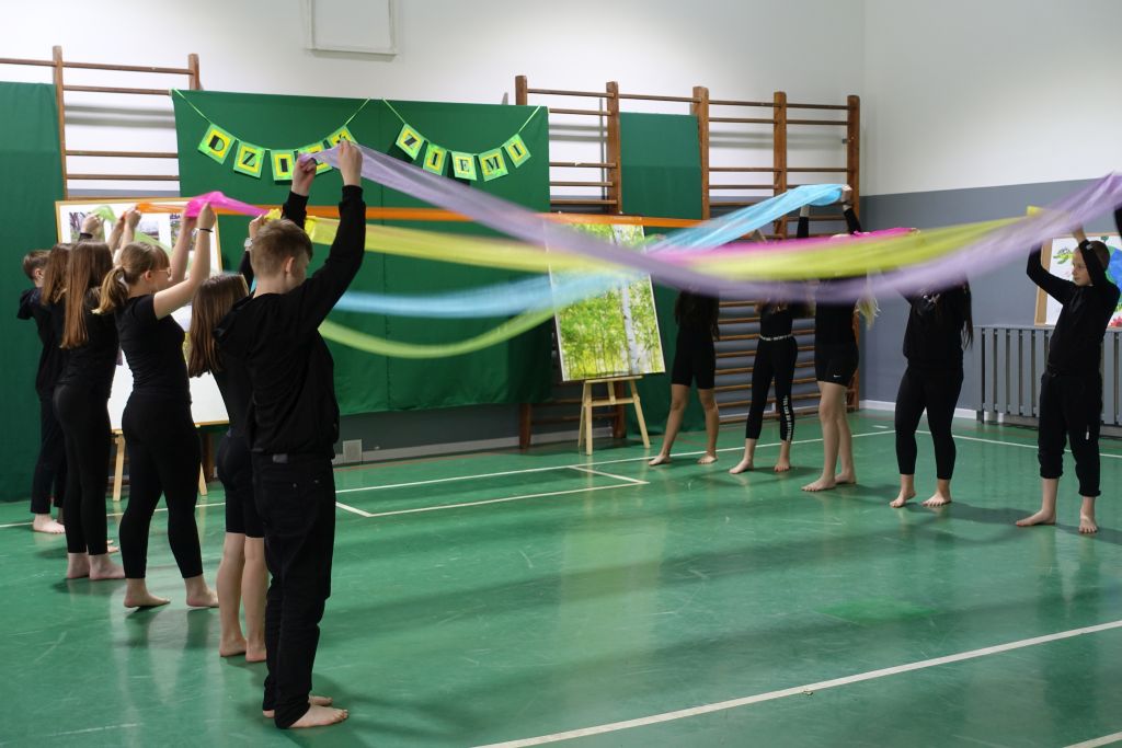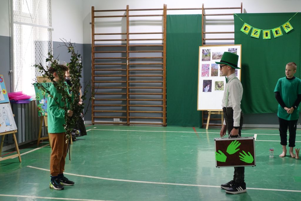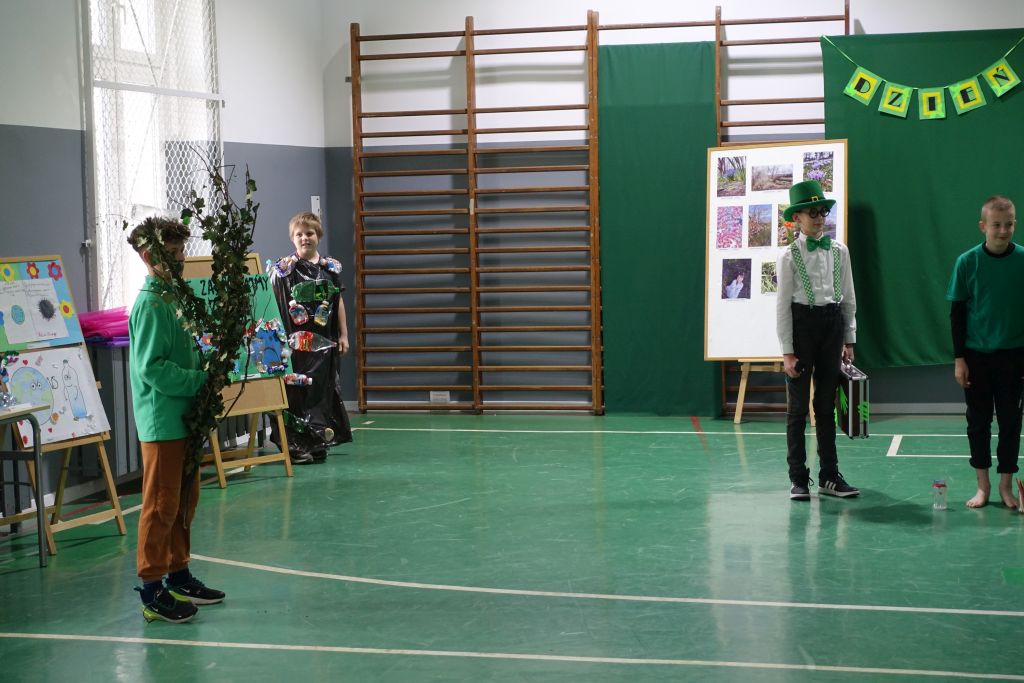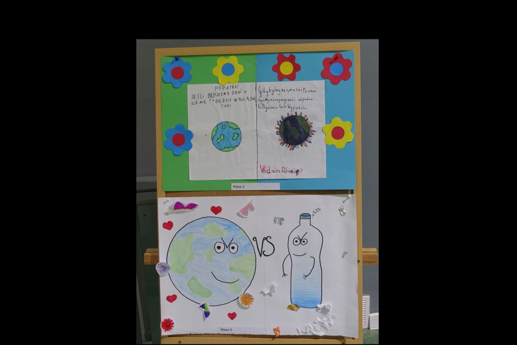 W tym dniu sala gimnastyczna przystrojona była plakatami, które przypominały nam o recyklingu i jego znaczeniu dla naszej planety. Nie zabrakło również zdjęć wiosny wykonanych przez uczniów w ramach konkursu fotograficznego.
