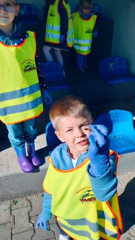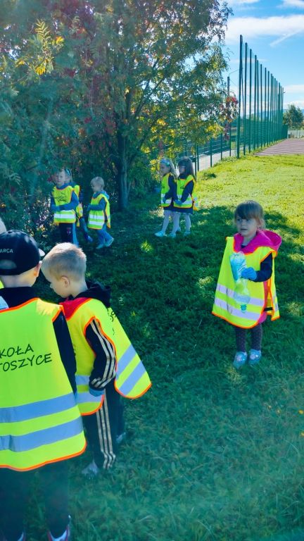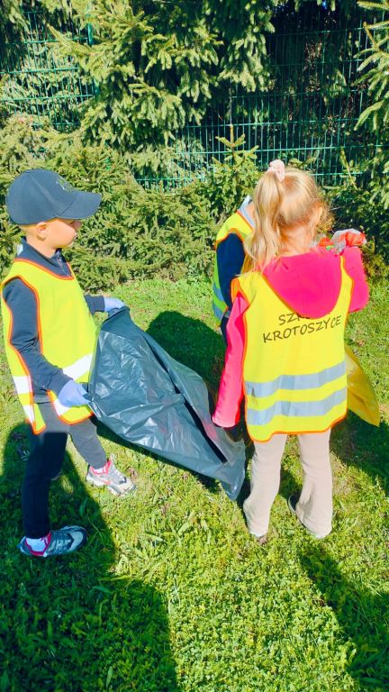 Dzieci z entuzjazmem zbierały papierki, plastikowe butelki, puszki i inne odpady, które niestety często zalegają w naszej okolicy. Dzięki wspólnemu wysiłkowi udało się oczyścić nie tylko teren wokół szkoły, ale również pobliskie ścieżki i skwerki. Każdy uczeń przyczynił się do tego, by Krotoszyce stały się czystsze i piękniejsze.