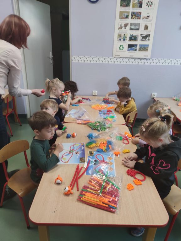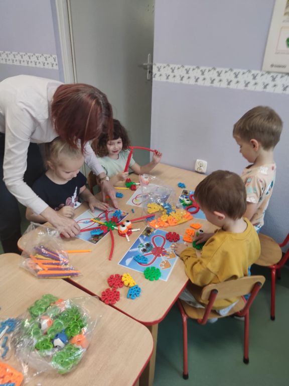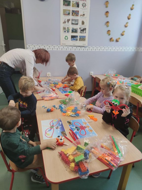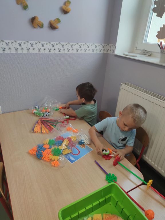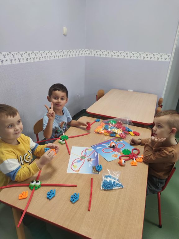Na ostatnich zajęciach dzieci krok po kroku próbowały ułożyć motylki zgodnie z załączoną instrukcją. Zadanie sprawiło wiele radości, choć nie dla wszystkich było łatwe.