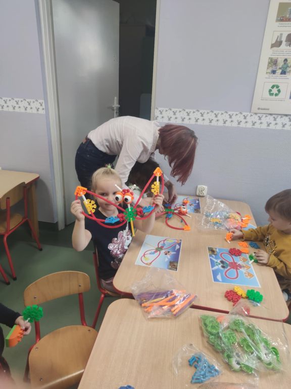 Na zajęciach robotyki dzieci uczą się myślenia technicznego, komputacyjnego, działania według algorytmu, rozkładania problemu na ciąg małych kroków. W rozwijaniu tych umiejętności pomagają klocki konstrukcyjne "K'nex Education" zakupione w ramach projektu "Laboratoria przyszłości".