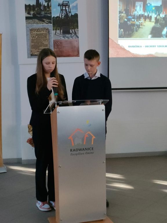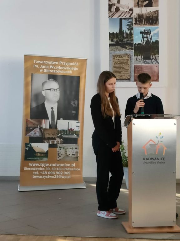 W czasie konferencji przedstawiciele szkoły - Julia i Piotrek - przedstawili krótką prezentację, dotyczącą tego, jak w naszej szkole jest pielęgnowana pamięć o Janie Wyżykowskim.