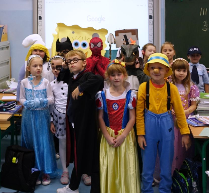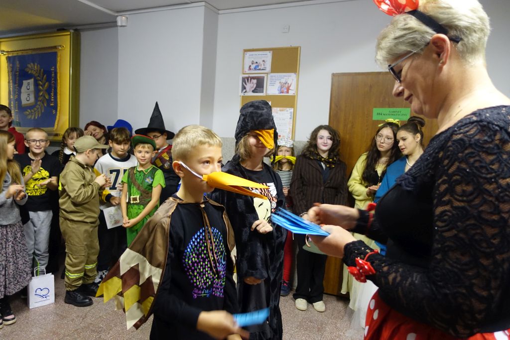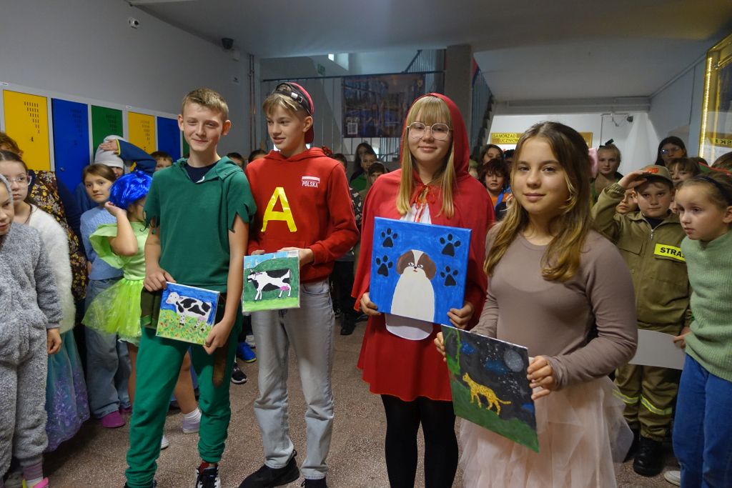 Samorząd Uczniowski wraz z p. Janiną Sorotą zaprosił całą społeczność szkolną do przebrania się za bohaterów z bajek. Bardzo dziękujemy wszystkim za zaangażowanie. Cieszy nas Wasza kreatywność. Najlepsze przebrania zostały nagrodzone drobnymi upominkami i cennymi „niepytajkami” w klasach starszych.