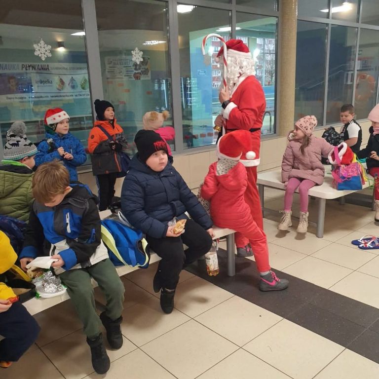 Dzieci były zachwycone, a klasa 1 spotkała się z Mikołajem na basenie!😊