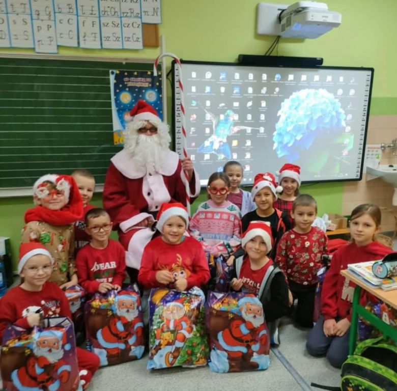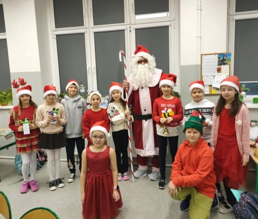 Nasz Gość, uprzedzając swoją wizytę charakterystycznym dla siebie dźwiękiem 🔔, zajrzał do wszystkich klas, rozdając im prezenty.