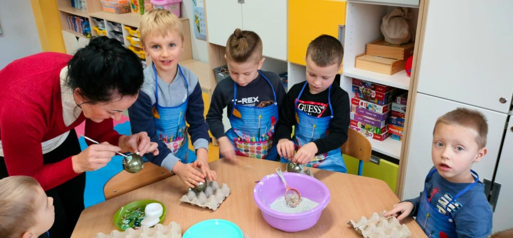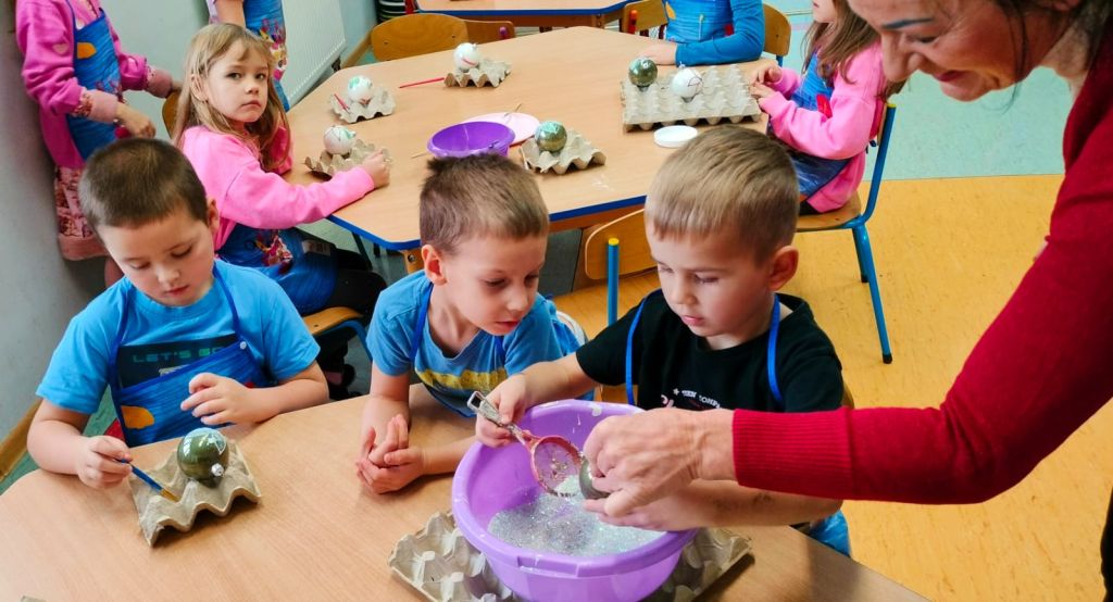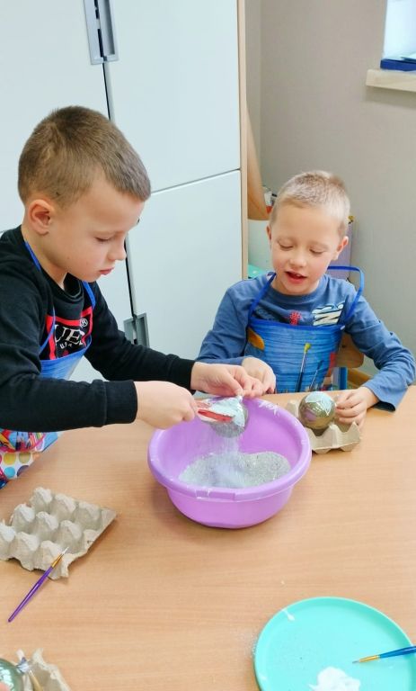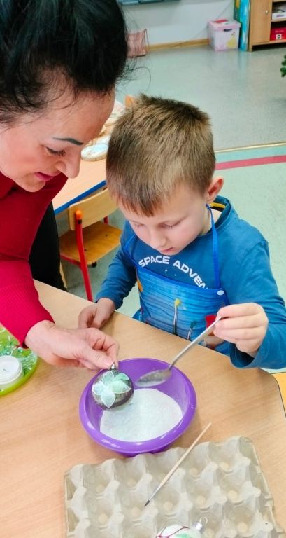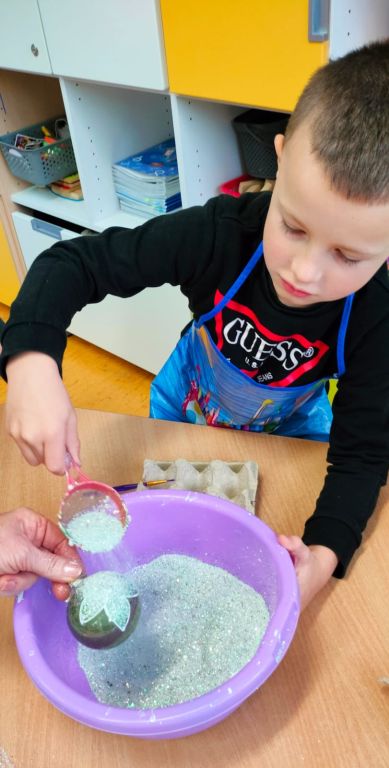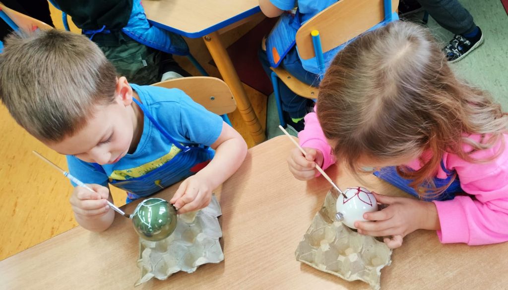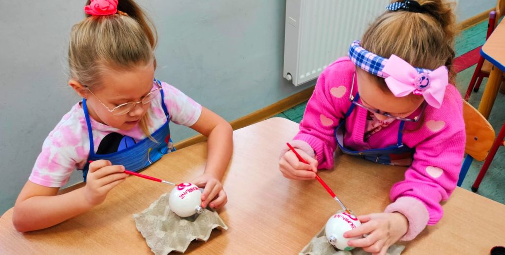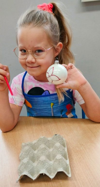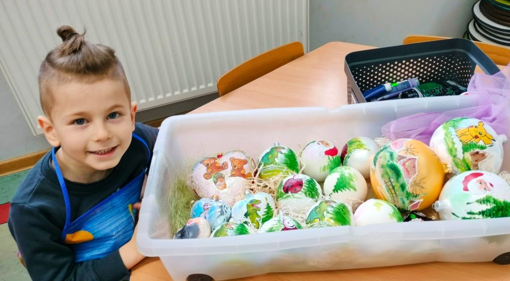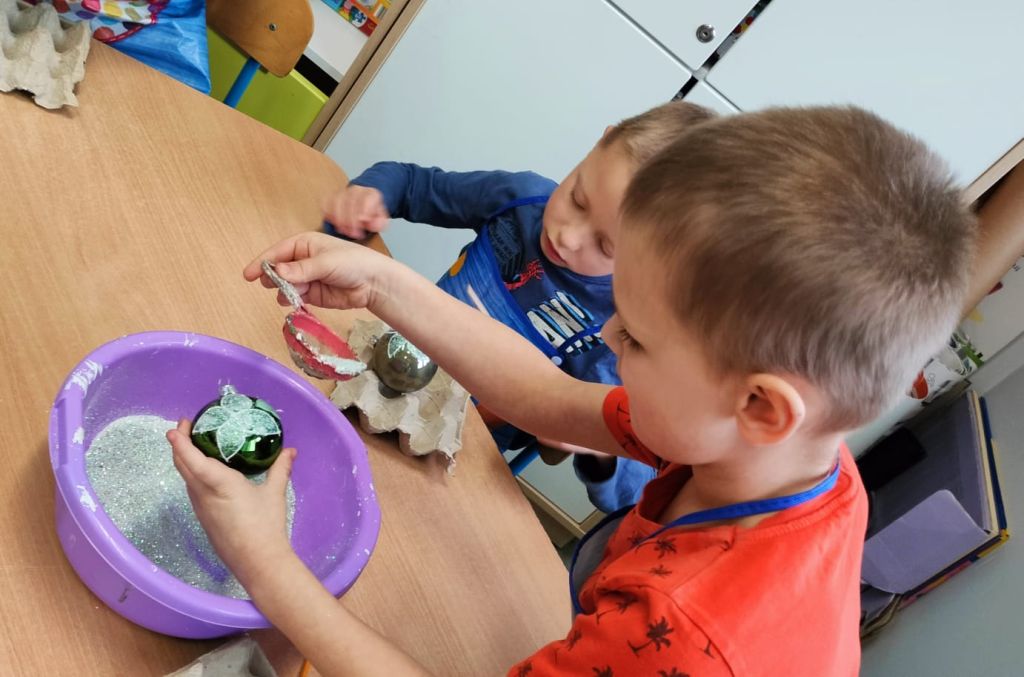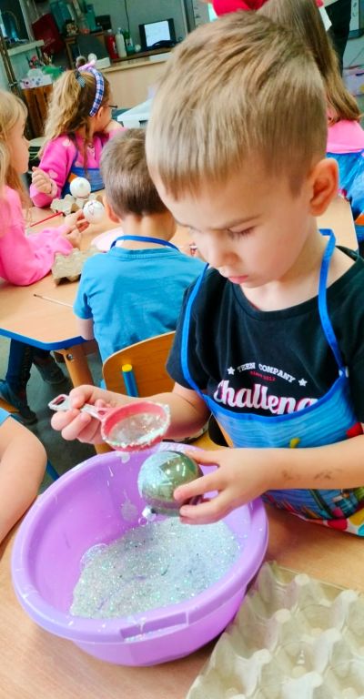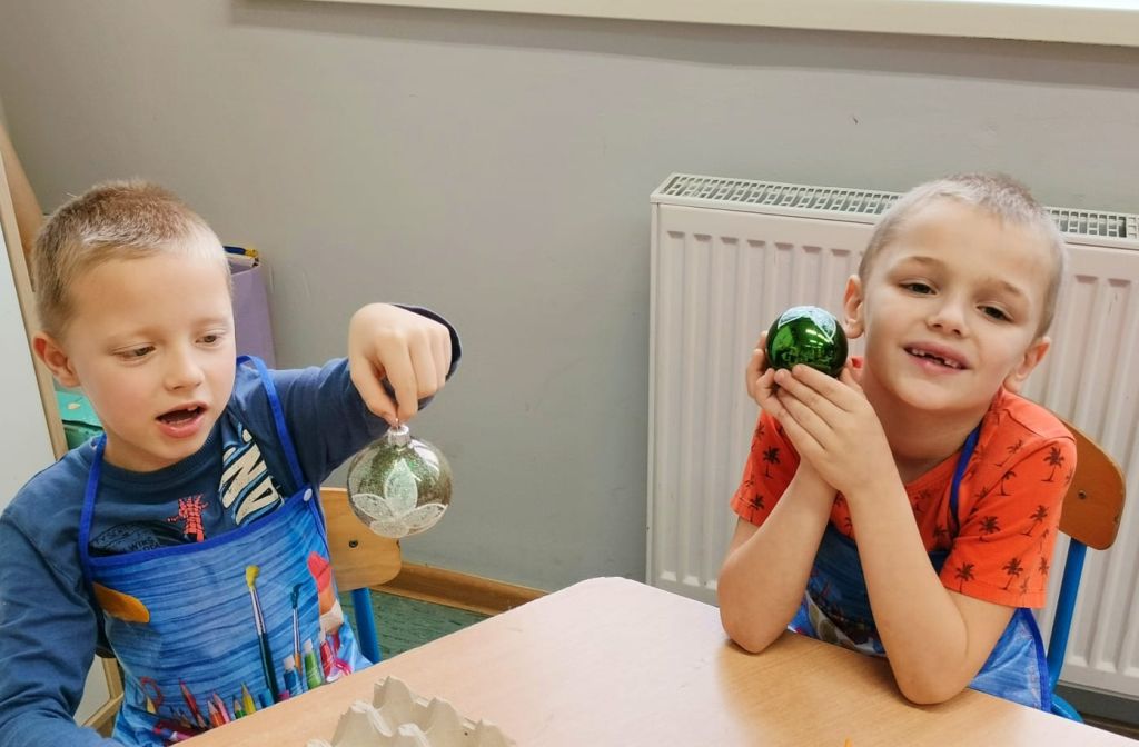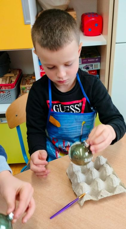 Pani Jadzia zaprosiła naszych uczniów do wspólnych warsztatów - każdy otrzymał bombkę ze swoim imieniem. Zadaniem dzieci było ozdobienie bombek brokatem oraz malowanie ich farbami🎨🖌️.