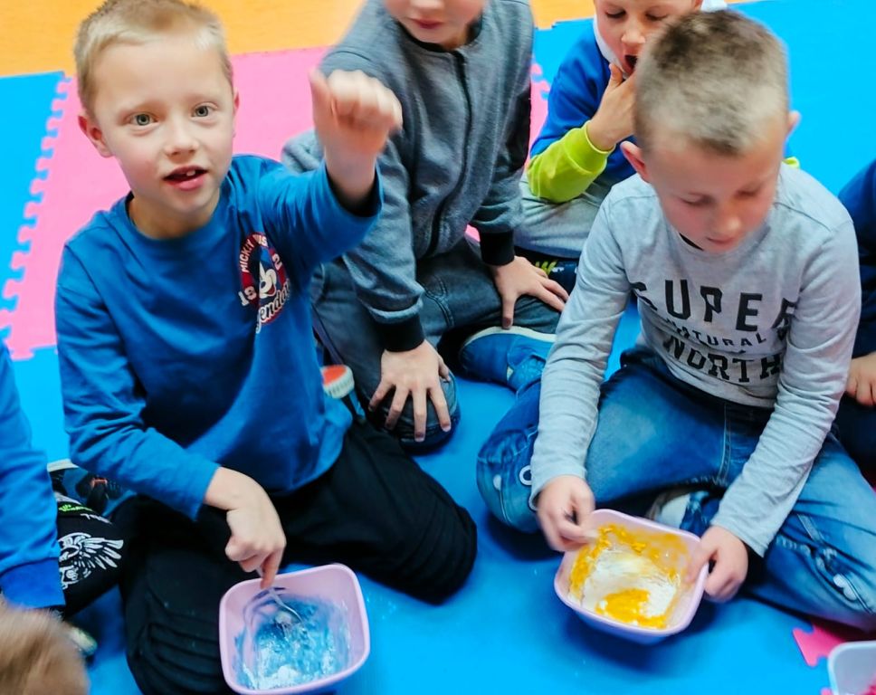 Dziś uczniowie kl. 0 wykonali samodzielnie kolorowy lukier.