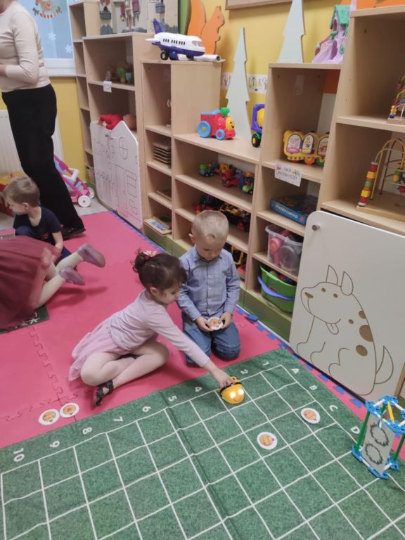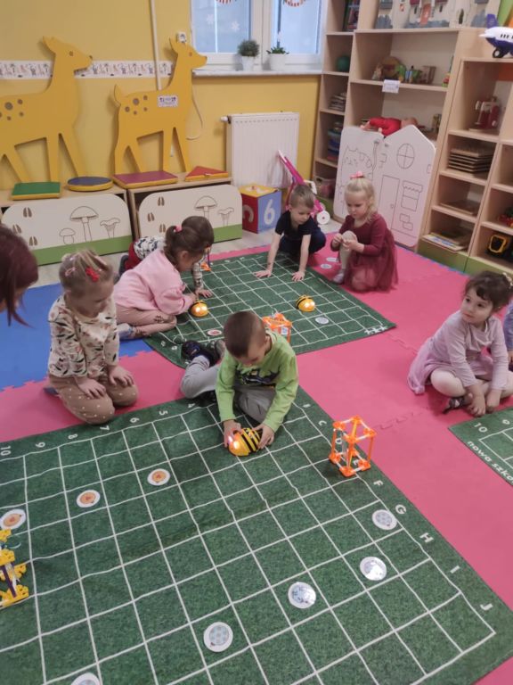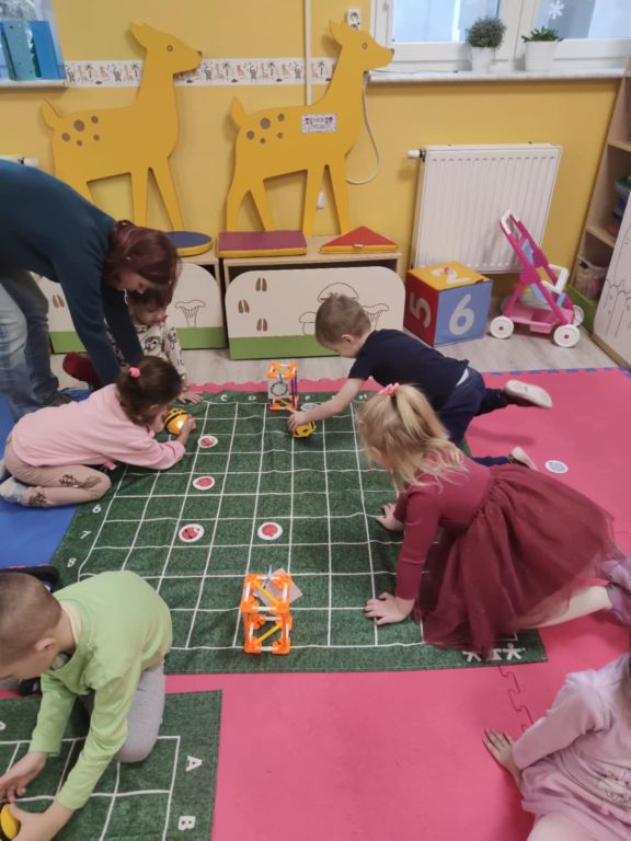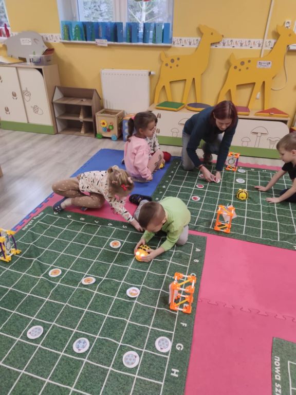 Nasz robocik poruszał się w różnych kierunkach, by znaleźć wszystkie choinkowe bombki, a trasę "programowali" nasi mali odkrywcy.