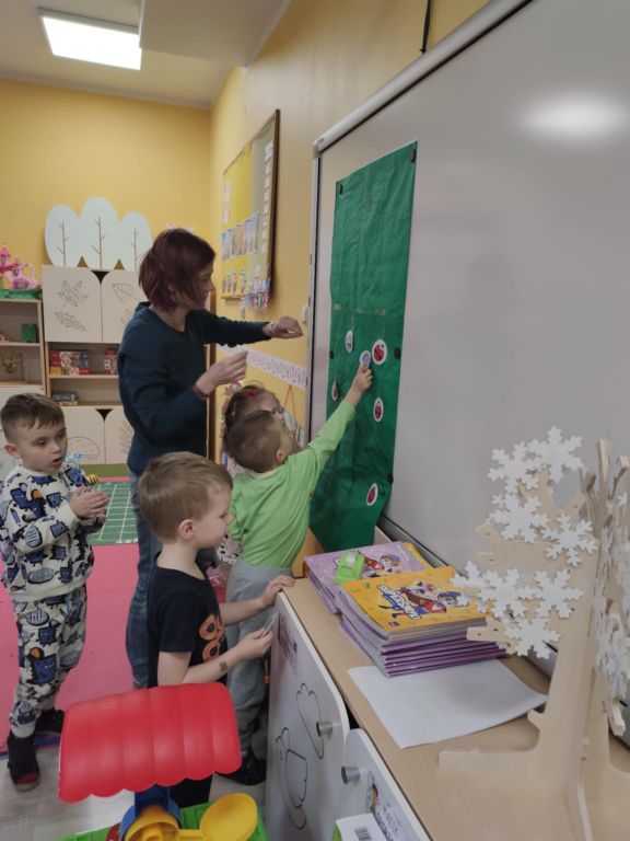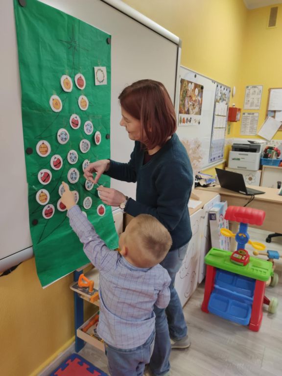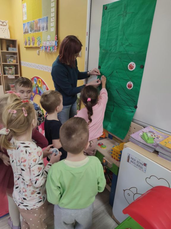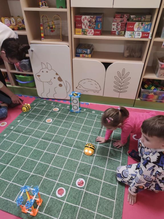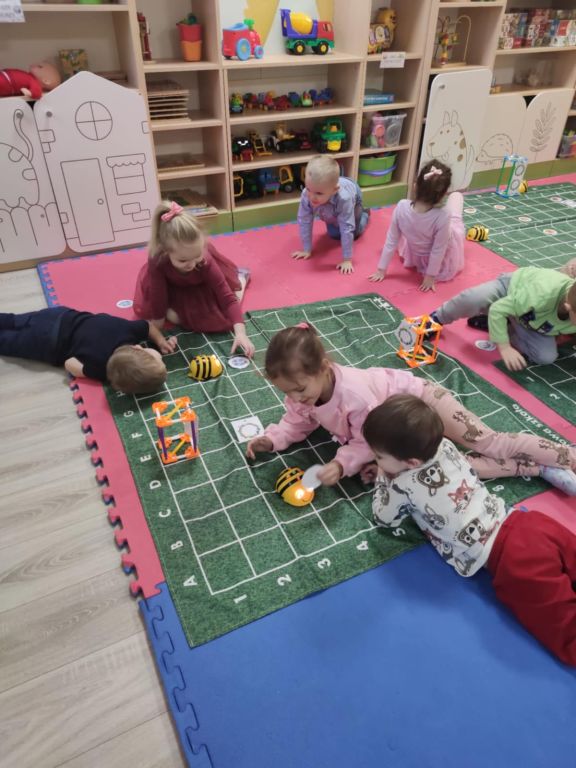 Dzisiaj na zajęciach dzieci razem z robotem - pszczółką "Bee Botem" ubierały choinkę.