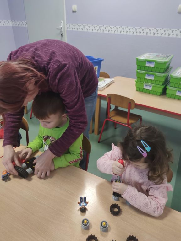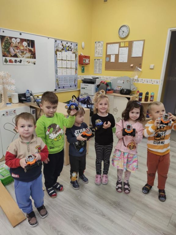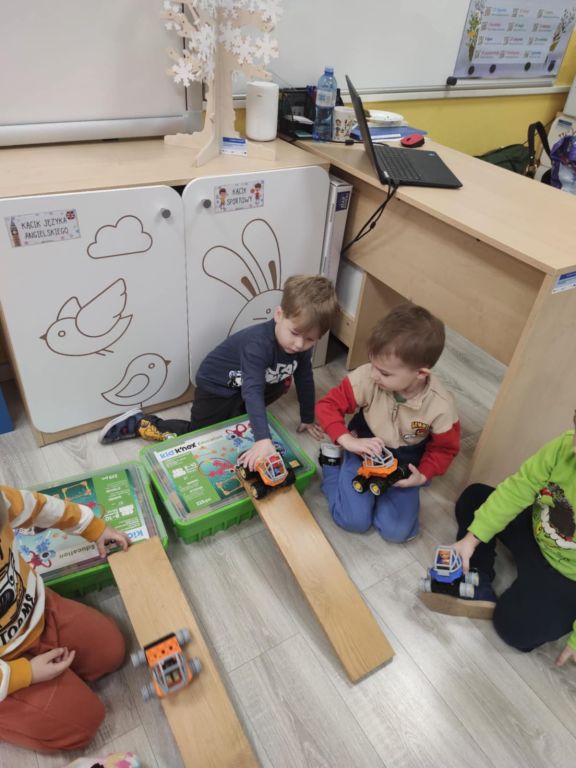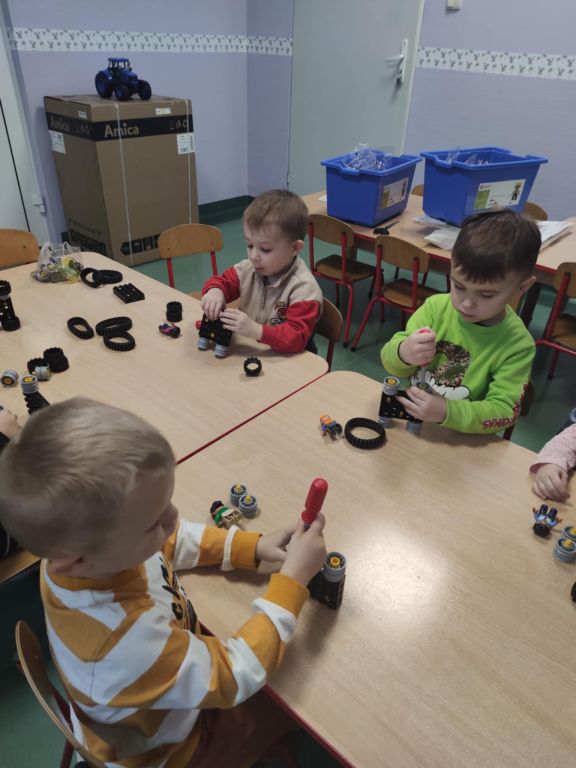 Na zajęciach z robotyki nasi najmłodsi między innymi rozwijają swoje umiejętności konstruktorskie. Niedawno dzieci budowały samochody, wykorzystując klocki Lego Duplo Education i zawarte w nich instrukcje. Każdy mógł sprawdzić, jak porusza się zbudowany przez siebie samochód i czy jest on bezpieczny.