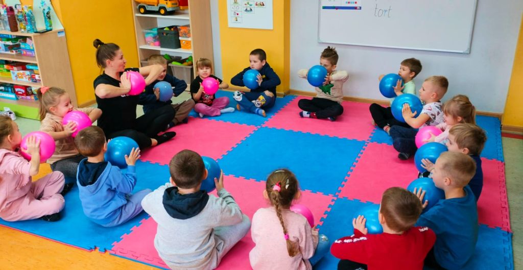 Zajęcia gimnastyki korekcyjnej u 5-6 latków organizowane w ramach projektu. Zabawy oraz ćwiczenia wzmacniające nasze mięśnie, które pomagają w utrzymaniu prawidłowej postawy ciała. 💪🤸♀️🤸♂️💪