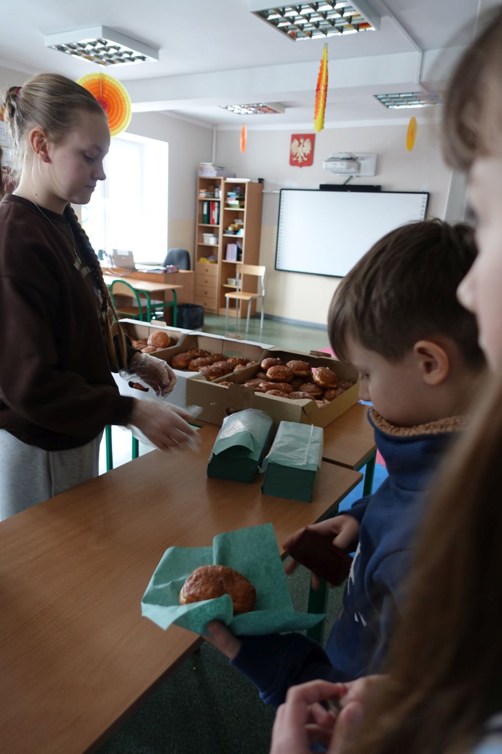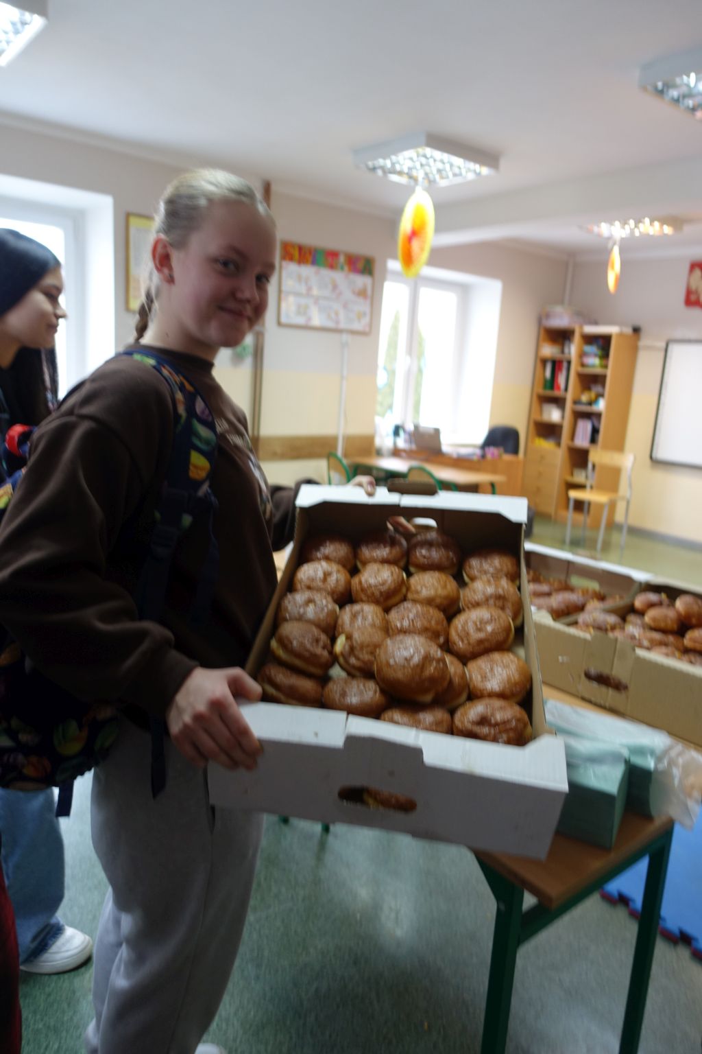 Dzisiaj okazało się, że społeczność szkolna bardzo lubi słodkie pączki.