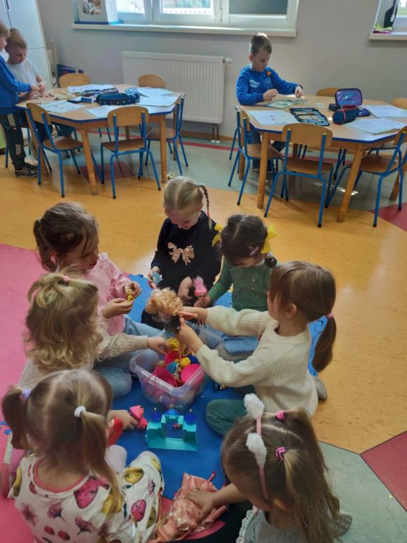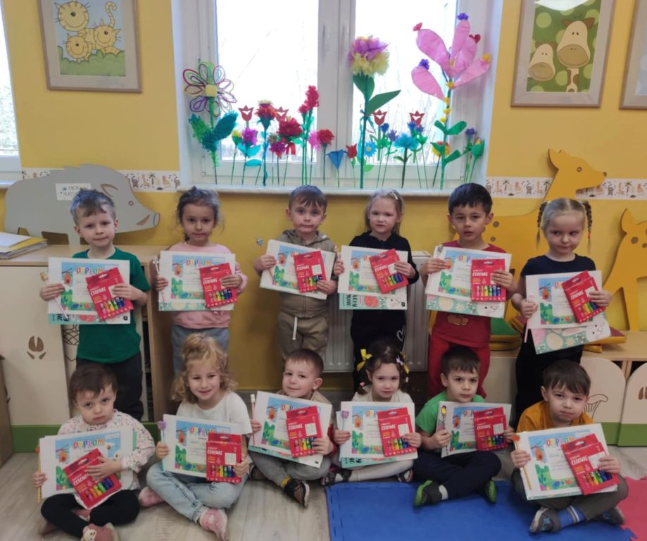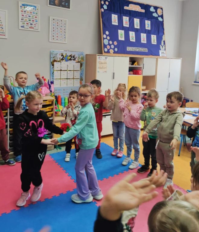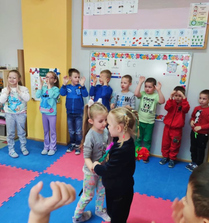 Po zakończeniu zabawy uczniowie z zerówki podarowali przedszkolakom kolorowe baloniki🎈, które miały zachęcić panią wiosnę, aby z nami pozostała.