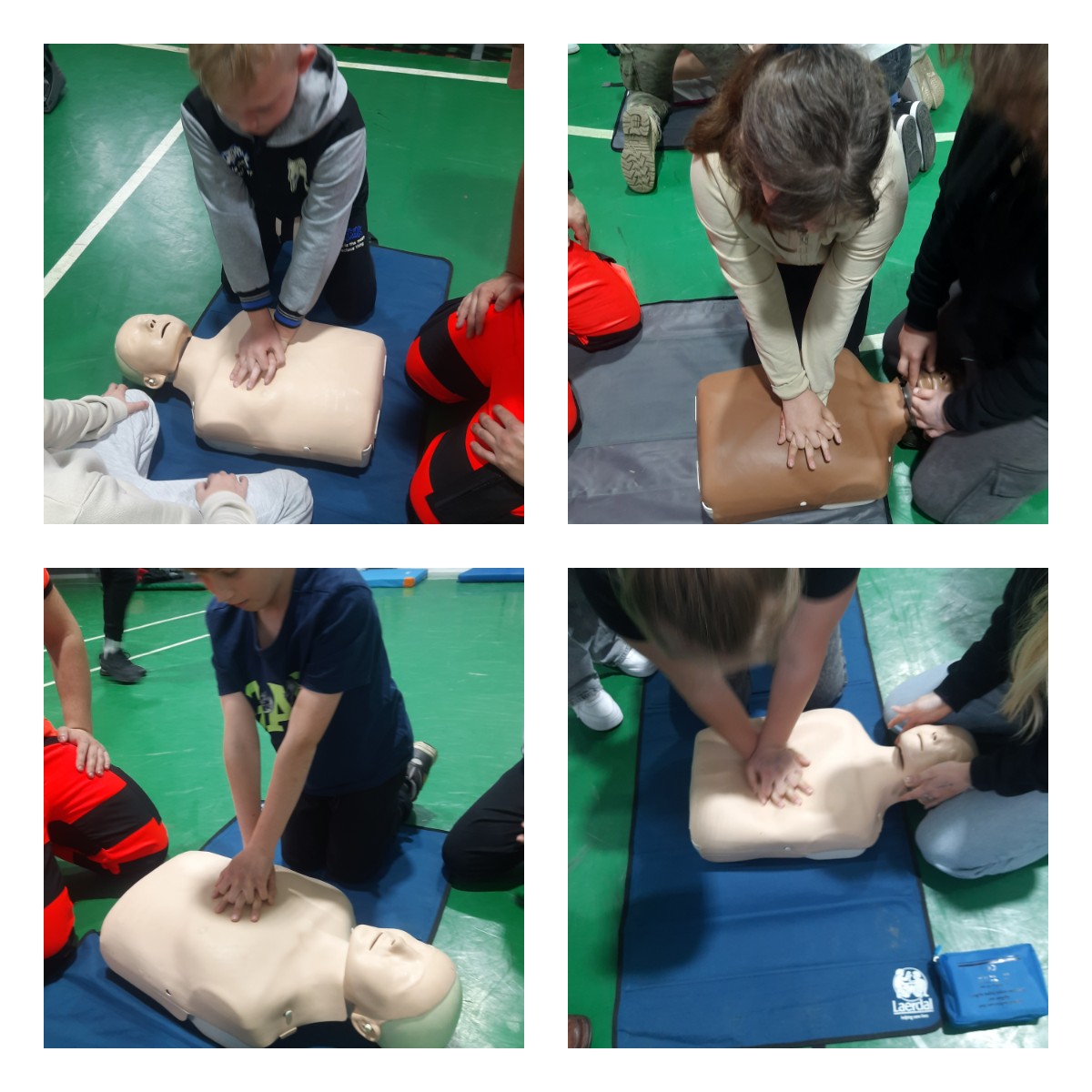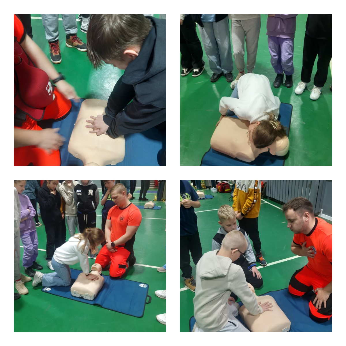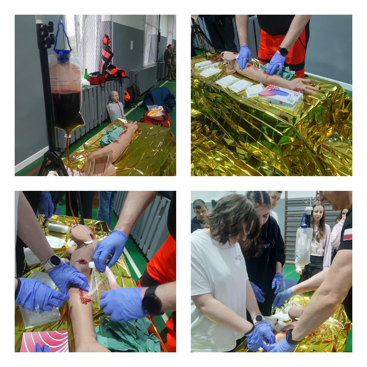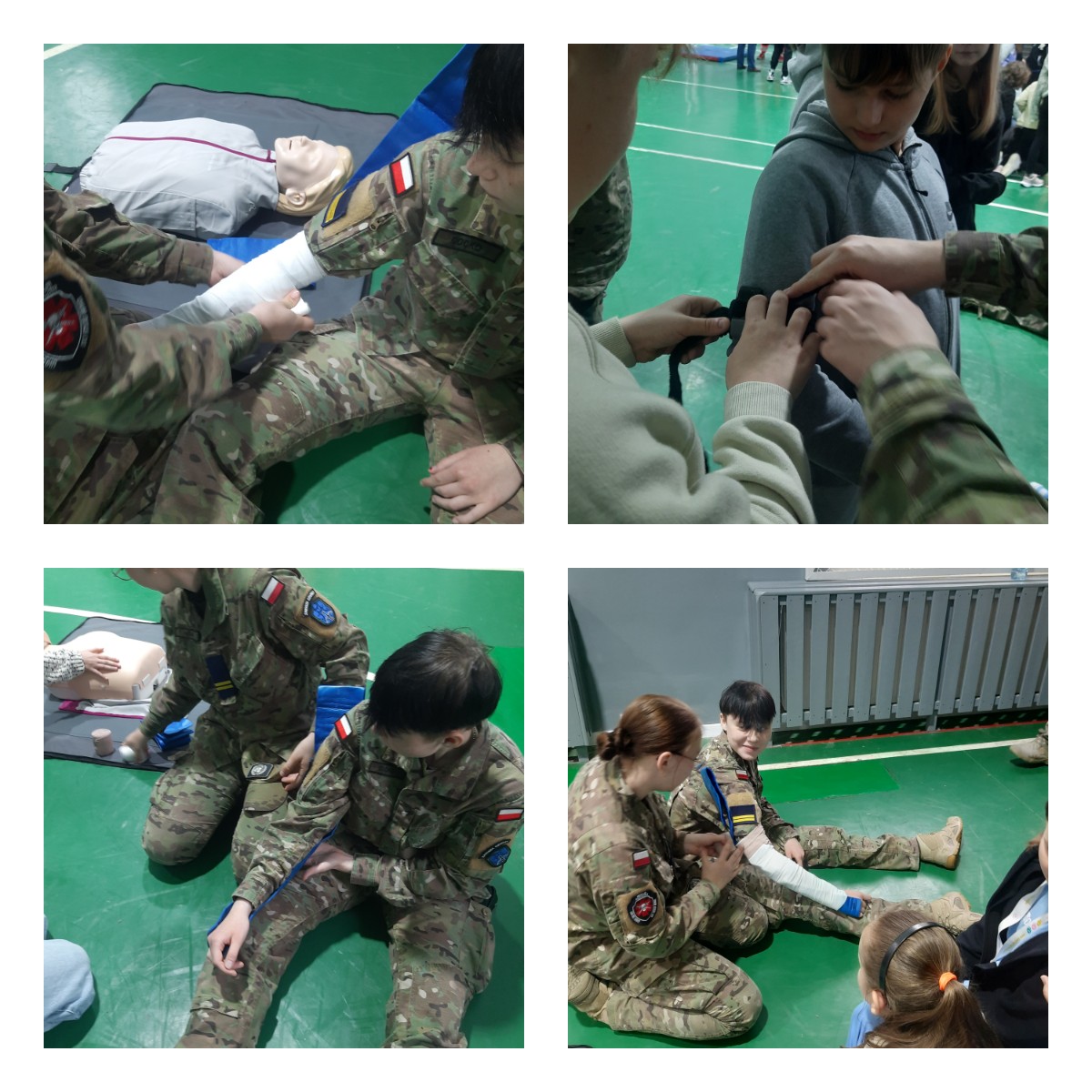 Nasi goście przygotowali różne stanowiska, na których uczniowie mogli ćwiczyć praktyczne umiejętności z udzielania pierwszej pomocy przedmedycznej. Każdy chętny uczeń mógł nauczyć się resuscytacji, opatrywania i usztywniania złamanych kończyn, opatrywania krwawiących ran czy też udzielenia pomocy w przypadku zadławienia.