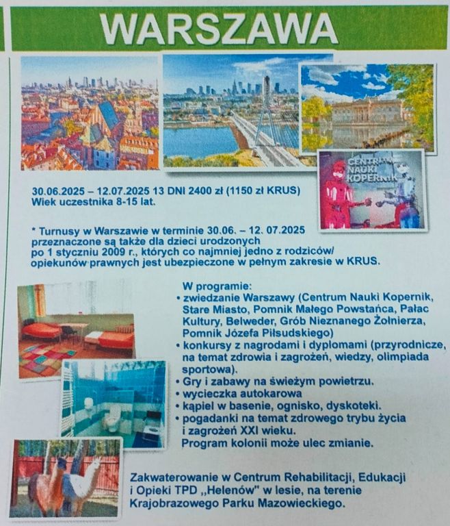 Prezentujemy ofertę kolonii letnich organizowanych przez TPD.
