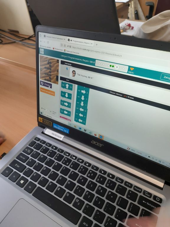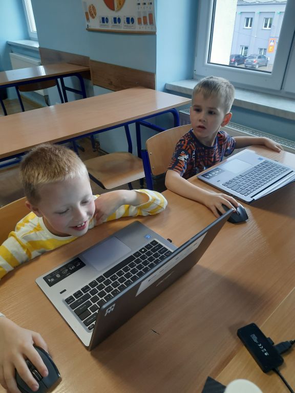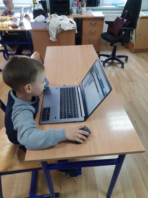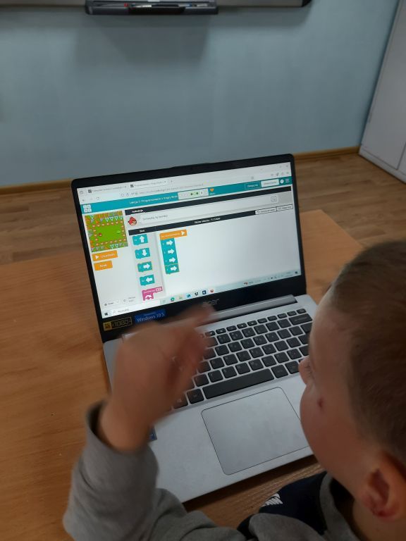 Uczniowie z zerówki po pracy z robotami, już wiedzą, że aby robot sprawnie wykonywał polecenia należy go dobrze zaprogramować. Na ostatnich zajęciach uczniowie poznawali pierwsze polecenia w wizualnym języku programowania.