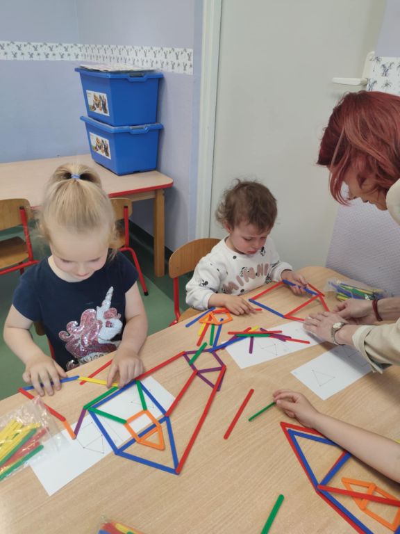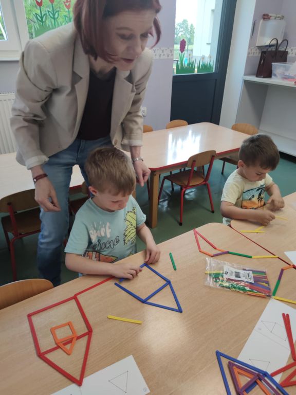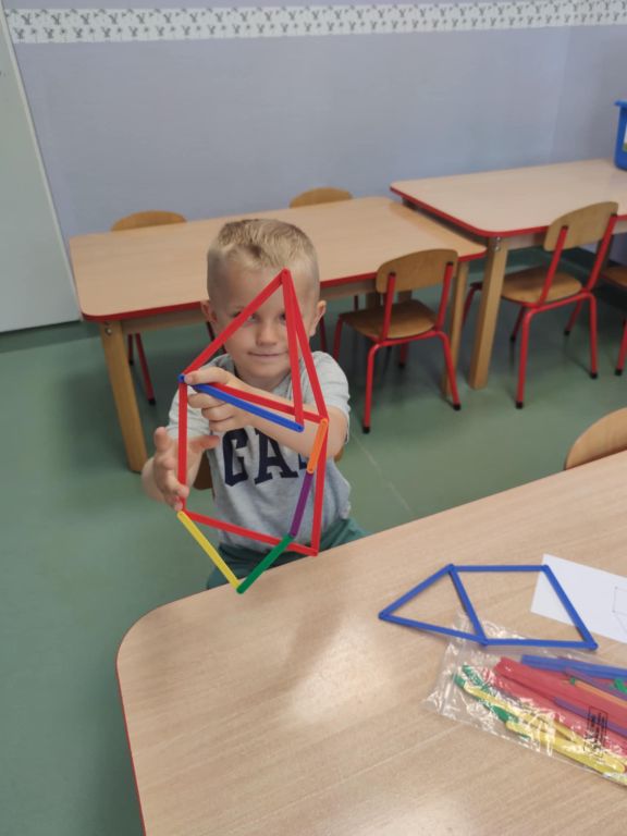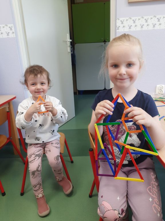 Na zajęciach robotyki nasi najmłodsi mieli ćwiczyć instrukcję powtarzania, budując domki różnej wielkości. Ale tak czasem bywa, że kreatywność dzieci bierze górę nad planem nauczyciela 😉. Nasze przedszkolaki "stwierdziły" że z kolorowych domków można skonstruować trochę bardziej abstrakcyjne budowle. Brawo za pomysłowość 👏