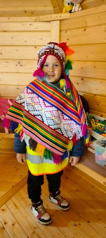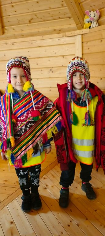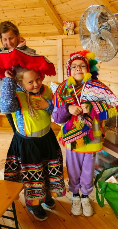 Następnie odbyły się warsztaty, podczas których dzieci poznały pochodzenie alpak oraz mogły przymierzyć stroje, które noszą mieszkańcy Peru 😄.