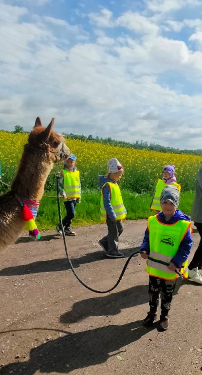 Na początku uczniowie wyruszyli na spacer z alpakami🦙.