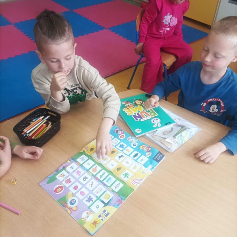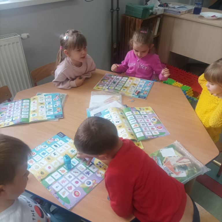 Na zajęciach projektowych z języka angielskiego grupa 5-6 latków poszerza swoją wiedzę językową, grając w gry planszowe☺️.